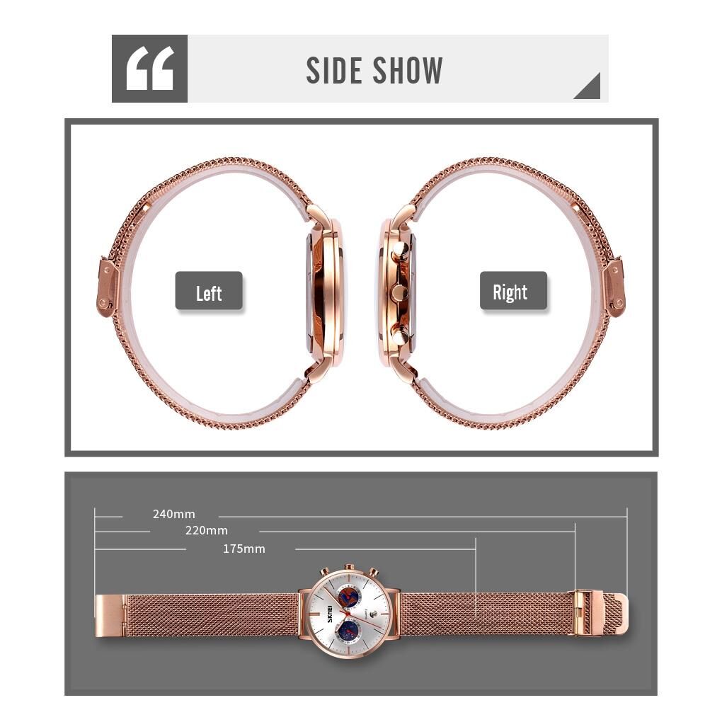 • Material: Glass (Mirror), Zinc Alloy (Case), Stainless Steel (Strap and Buckle)