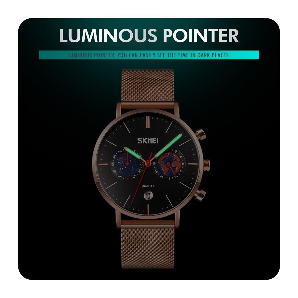 • 1 x 9231 Men Map Pattern Calendar Stainless Steel Strap Quartz Watch