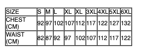 SIZE S M L XL XL 3XL 4XL 5XL 6XL