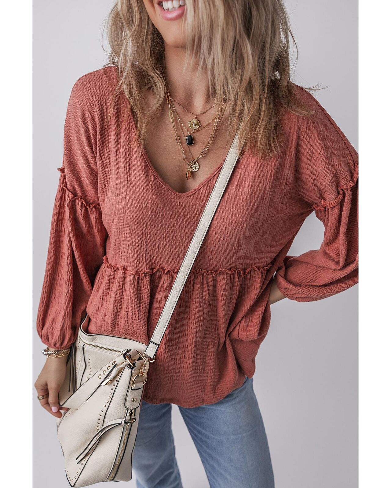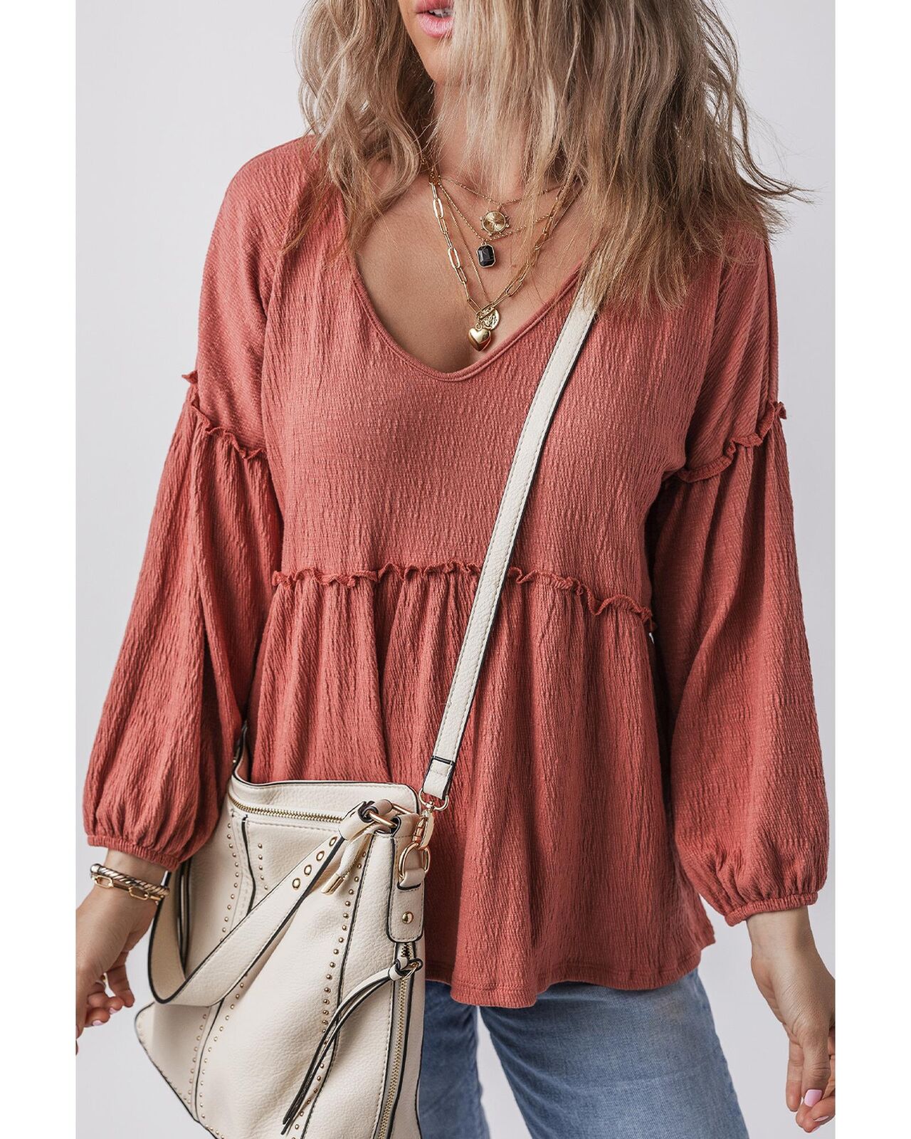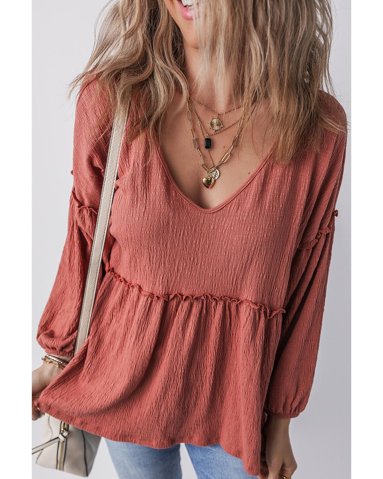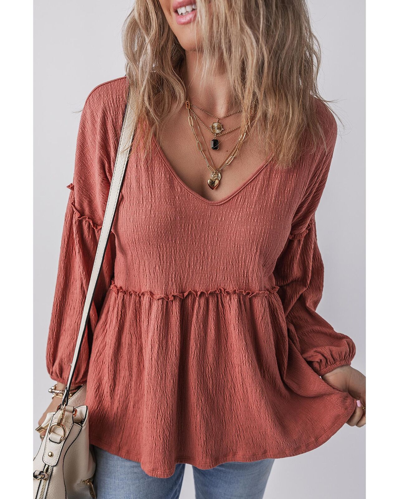 • Solid color blouse in mineral red