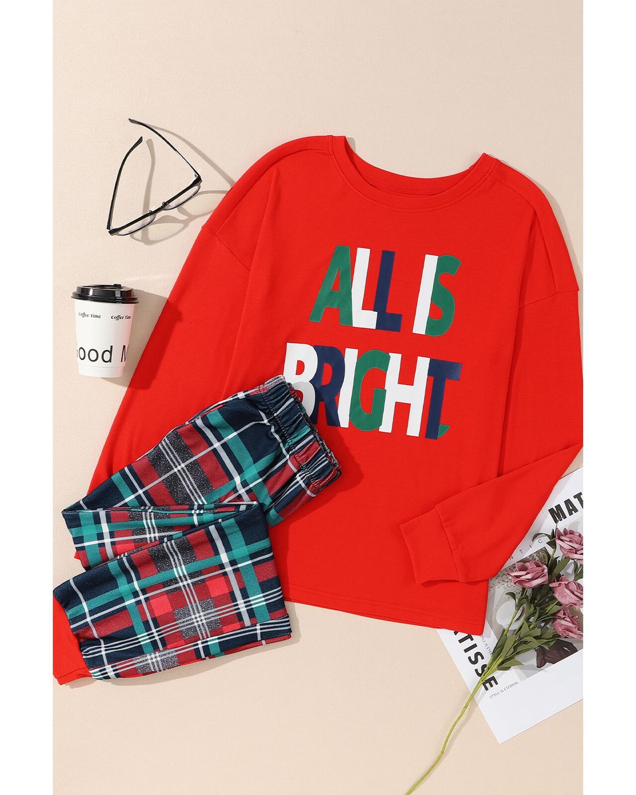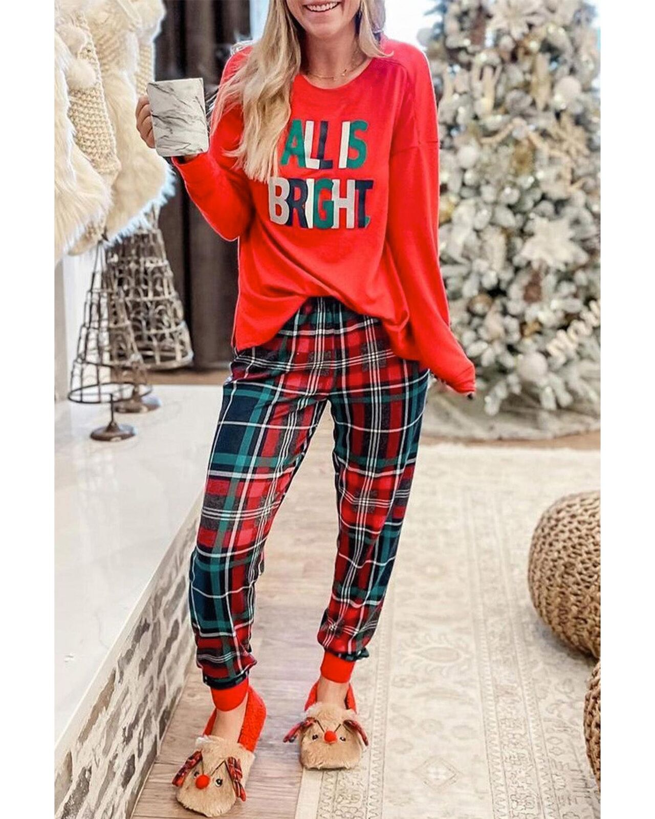 • Multicolor ALL IS BRIGHT Graphic Christmas Plaid Pajamas Set
