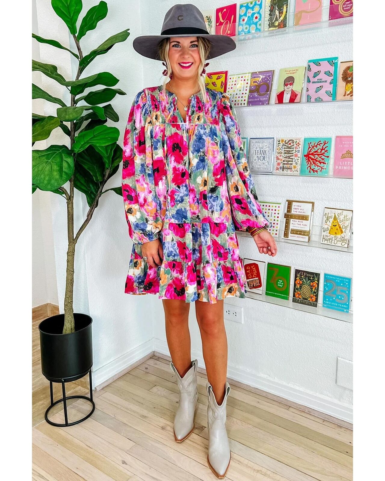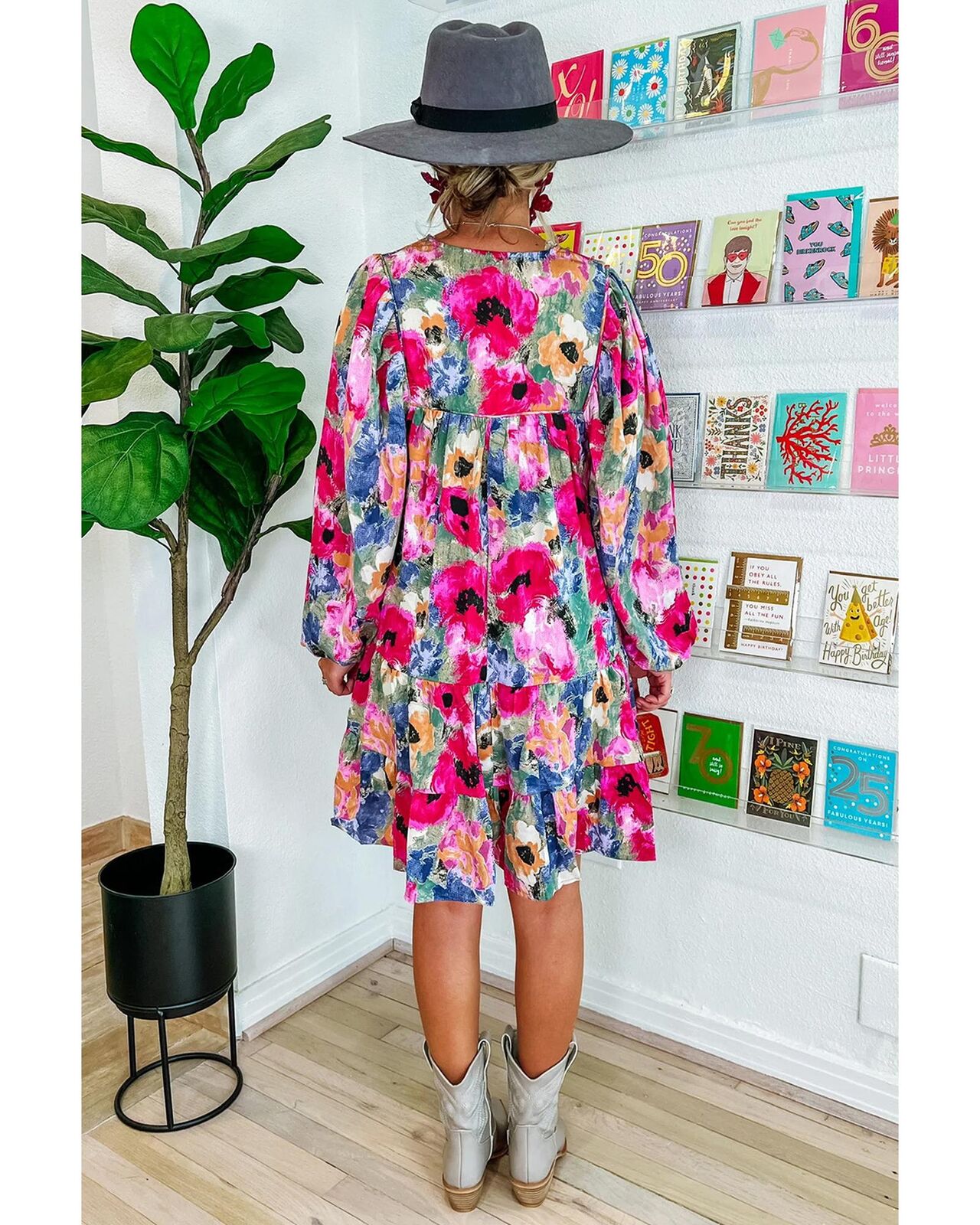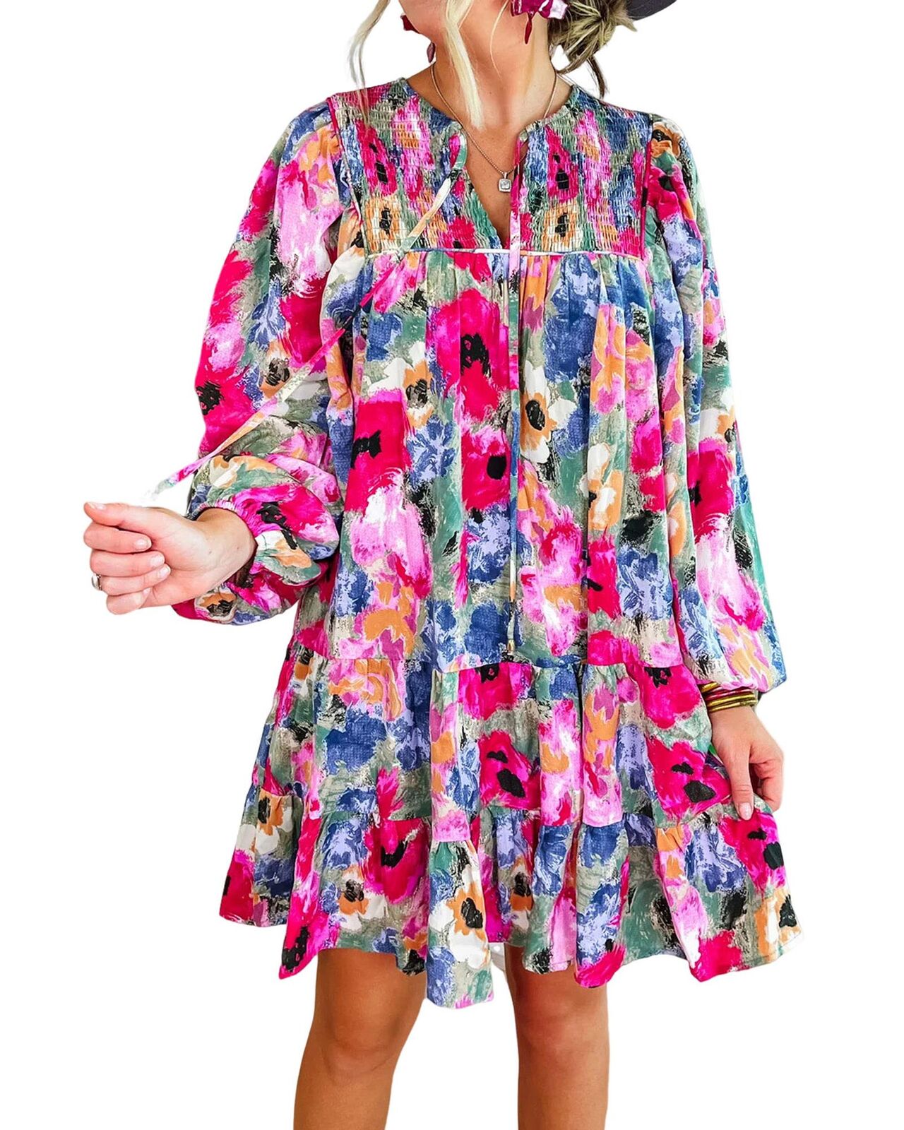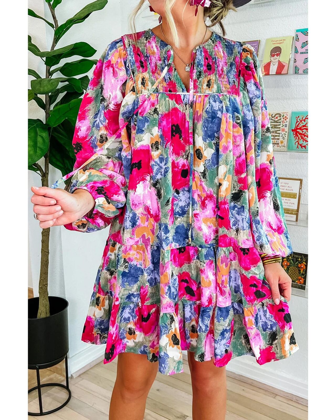 • Multicolored floral shift dress
