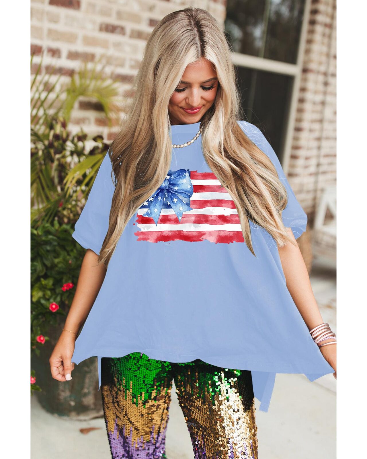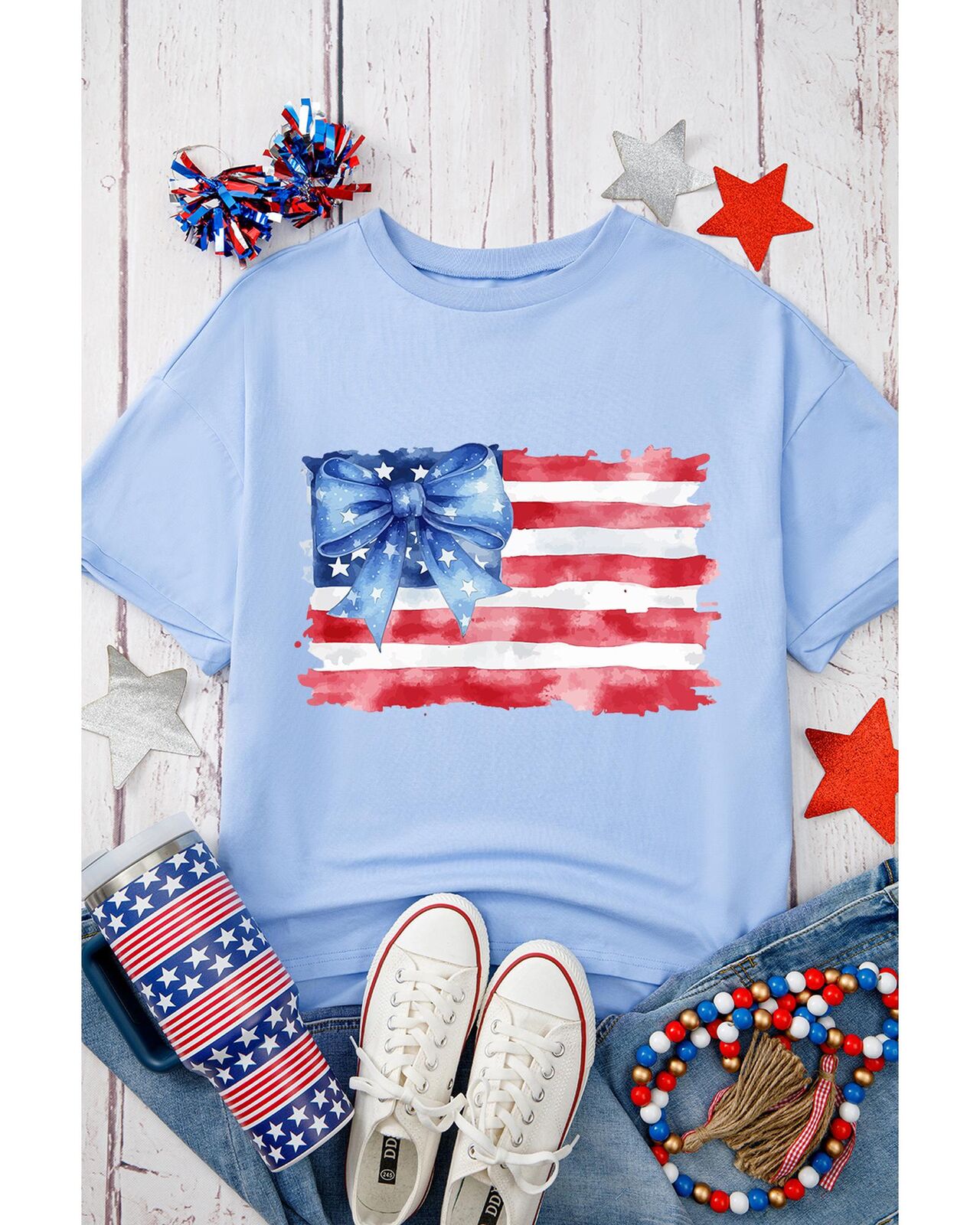 • American flag print with a bow knot design