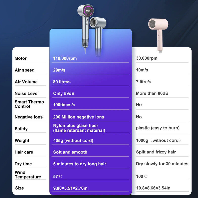 The NNEOBA Professional High-Speed Hair Dryer is a cutting-edge hair care tool designed for salon-quality results at home. Equipped with a powerful 110,000 RPM brushless motor, this dryer delivers ultra-fast drying, reducing styling time significantly. The intelligent heat control system ensures optimal temperature regulation, checking the temperature 100 times per second to protect your hair from heat damage.
