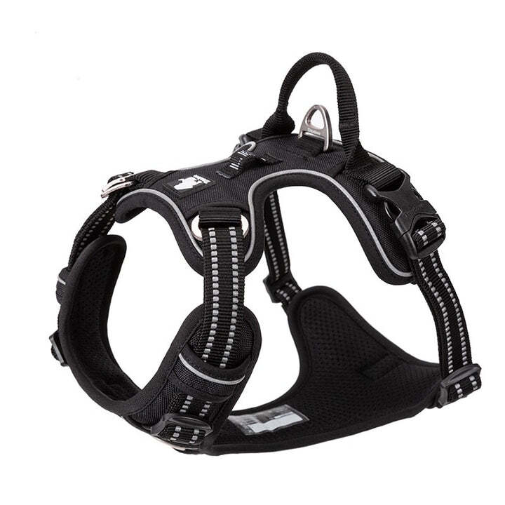 Adventurer No pull Dog harness. Get ready to take your dog around the world in this Sophisticated Doggie harness. Available in 10 Stylish colours. The Adventurer no pull harness features breathable air mesh which makes it super soft and comfortable for your Pet. High density Nylon webbing with 3M reflectors to improve visibility at night. Duraflex buckles on both sides of the harness with large loading capacity which greatly improves tensile strength. Easy to put on and take off. A handle on the back for easy use in the car.