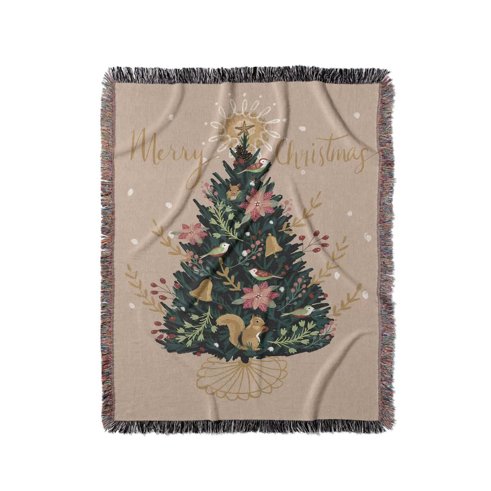 Off white Christmas Tree Throw Blanket | Festive Sofa Cover for Holiday Decor, 110x160cm