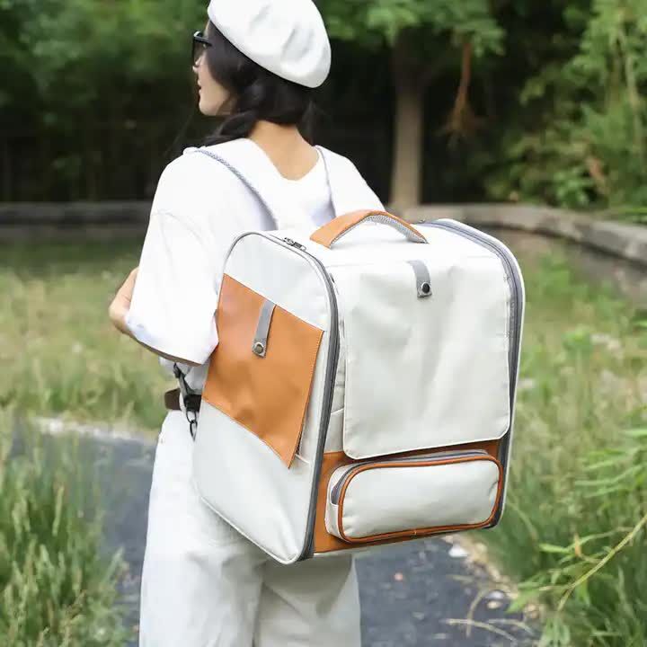 Off-white Large Capacity Breathable Foldable Pet Trolley - Travel Cat Carrier with Wheels, Portable, Spacious, and Convenient for Two Cats