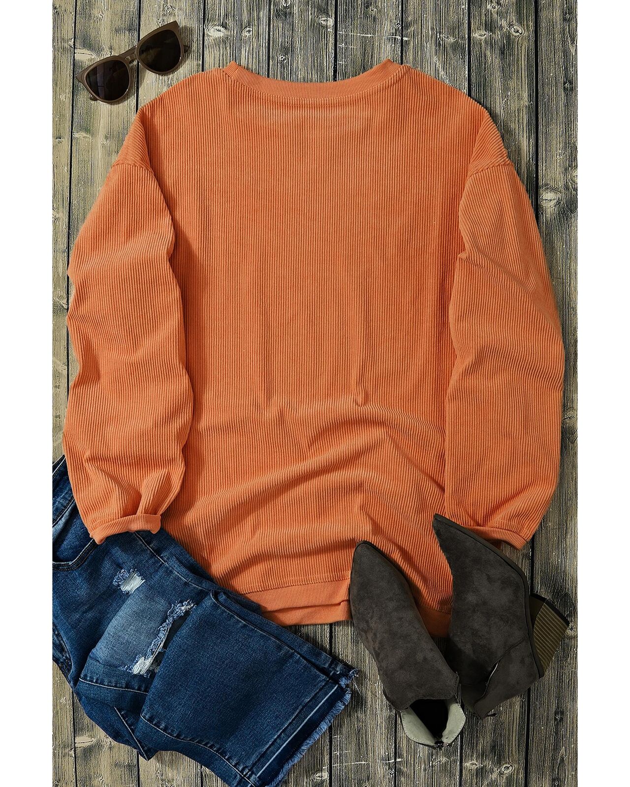 • Poppy orange corduroy fabric with blush pink wording