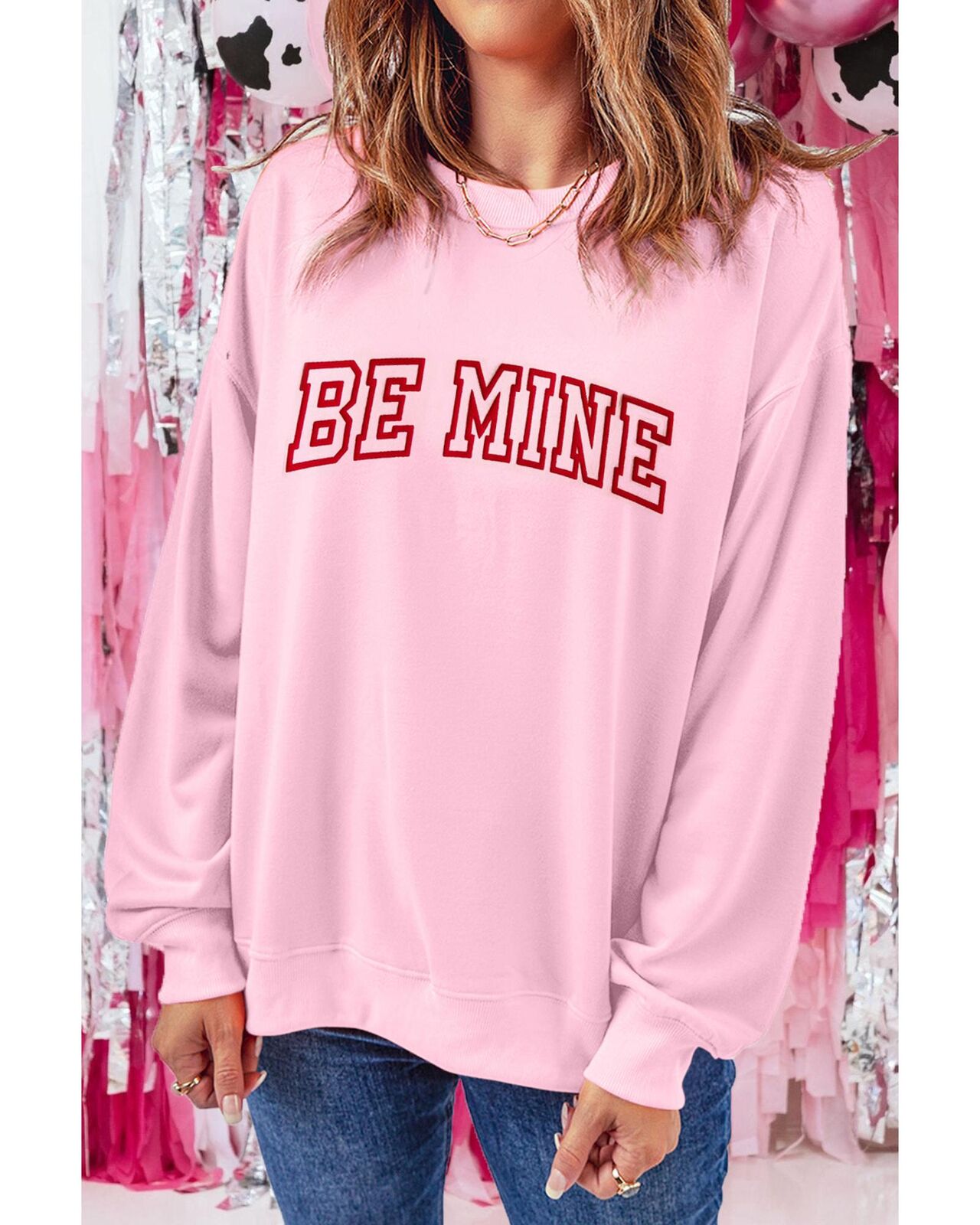 • Pink BE MINE Puff Graphic Pullover Sweatshirt