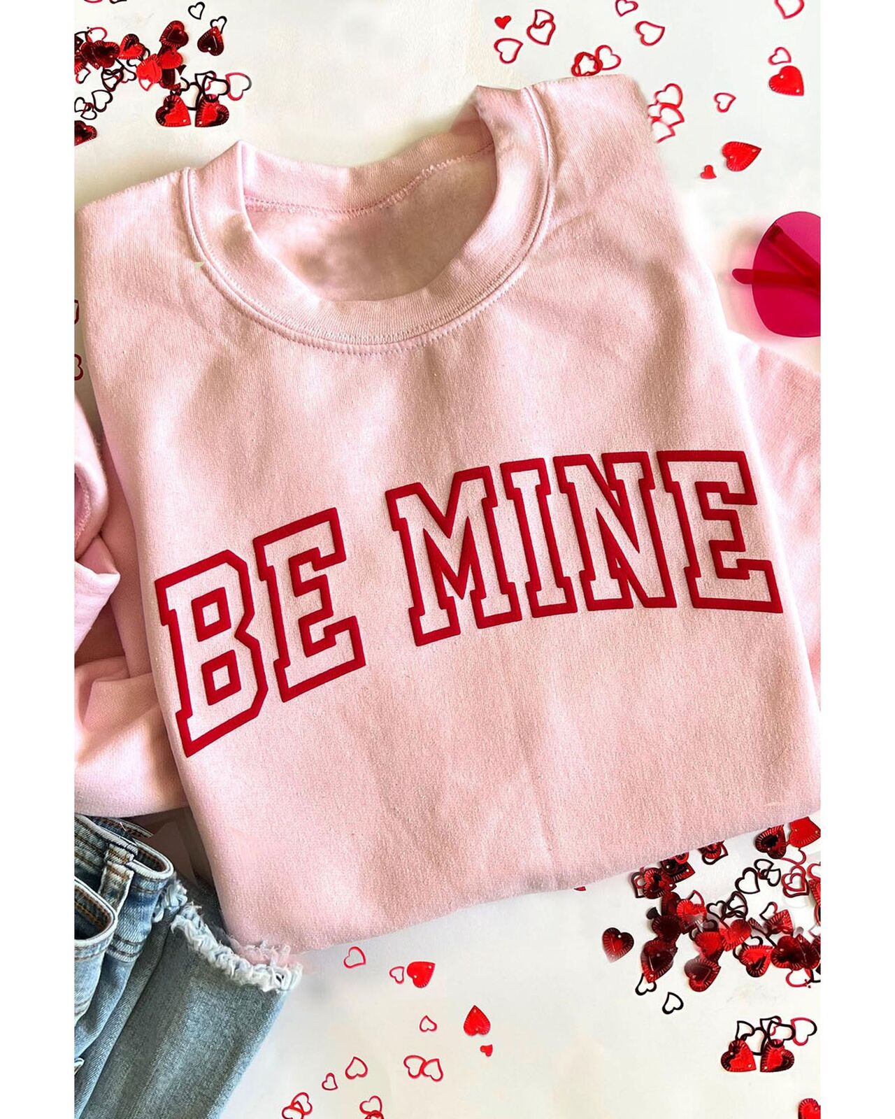 • Pink BE MINE Puff Graphic Pullover Sweatshirt