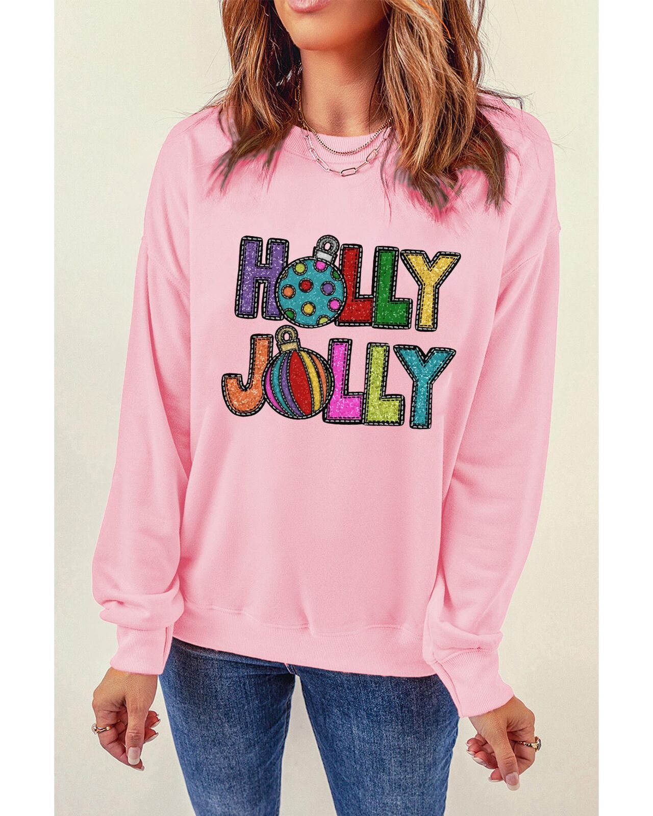 • Pink HOLLY JOLLY Christmas Festive Letter Graphic Sweatshirt