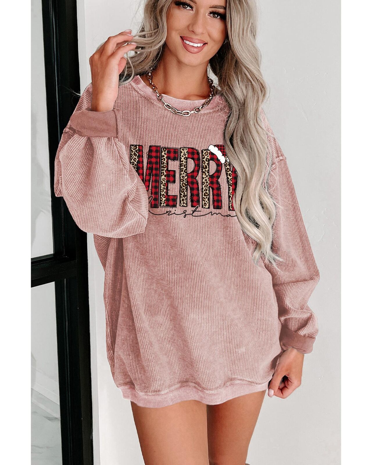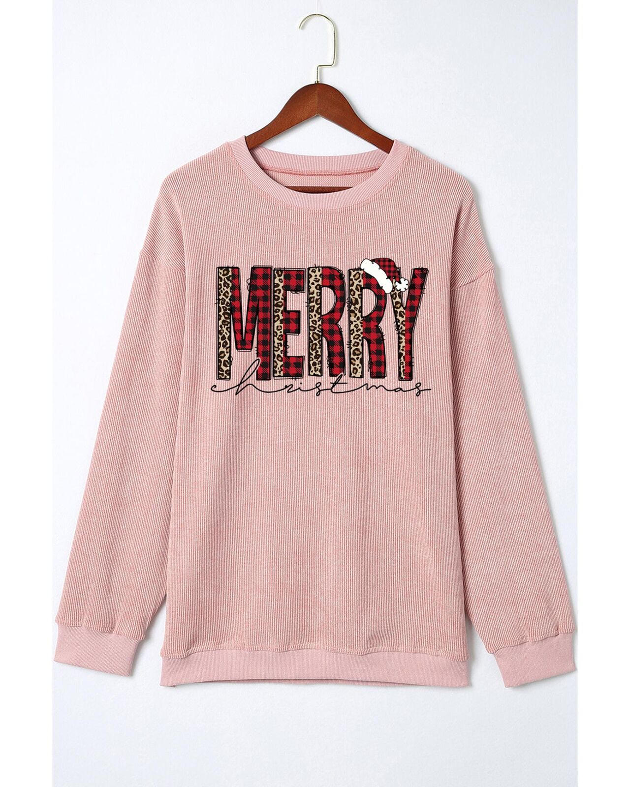 • Trendy corded sweatshirt with a festive “MERRY” print