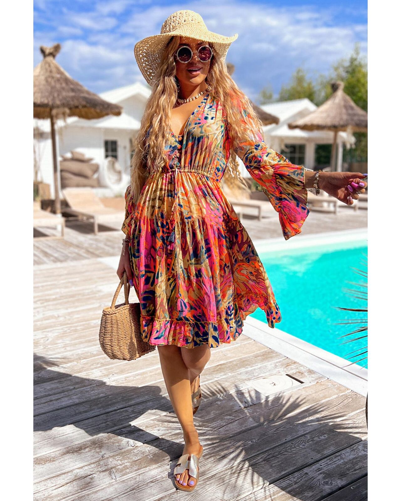 • Flared sleeves create a bohemian vibe