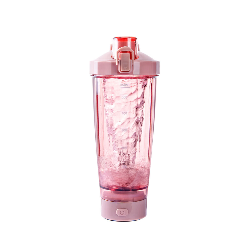 Pink Portable Electric Shaker Bottle without LED Light, 550ml Sports Protein Mixer Cup for Gym and Travel