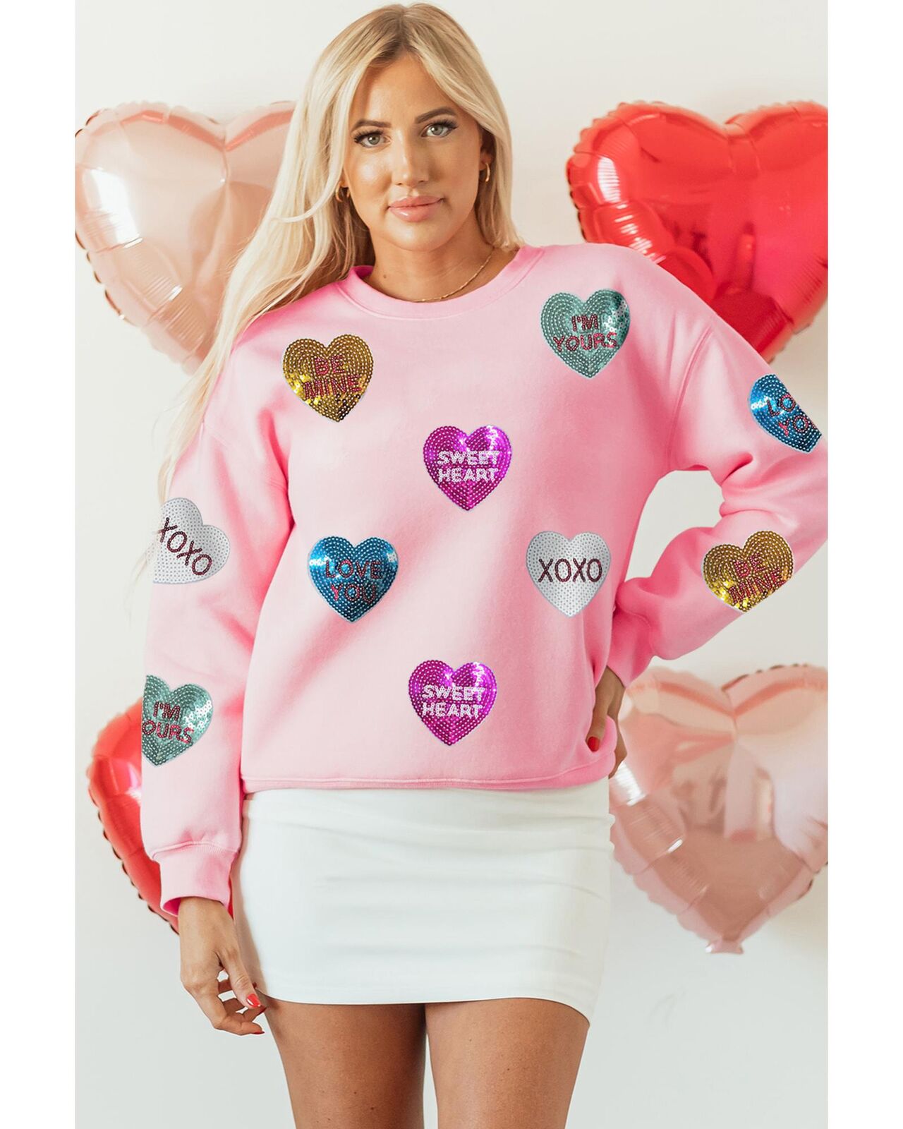 • Romantic letters and a heart shape add a sweet touch to this pullover