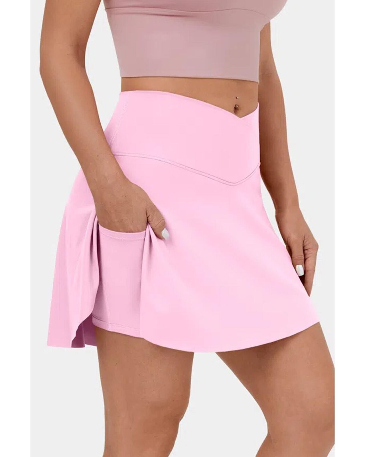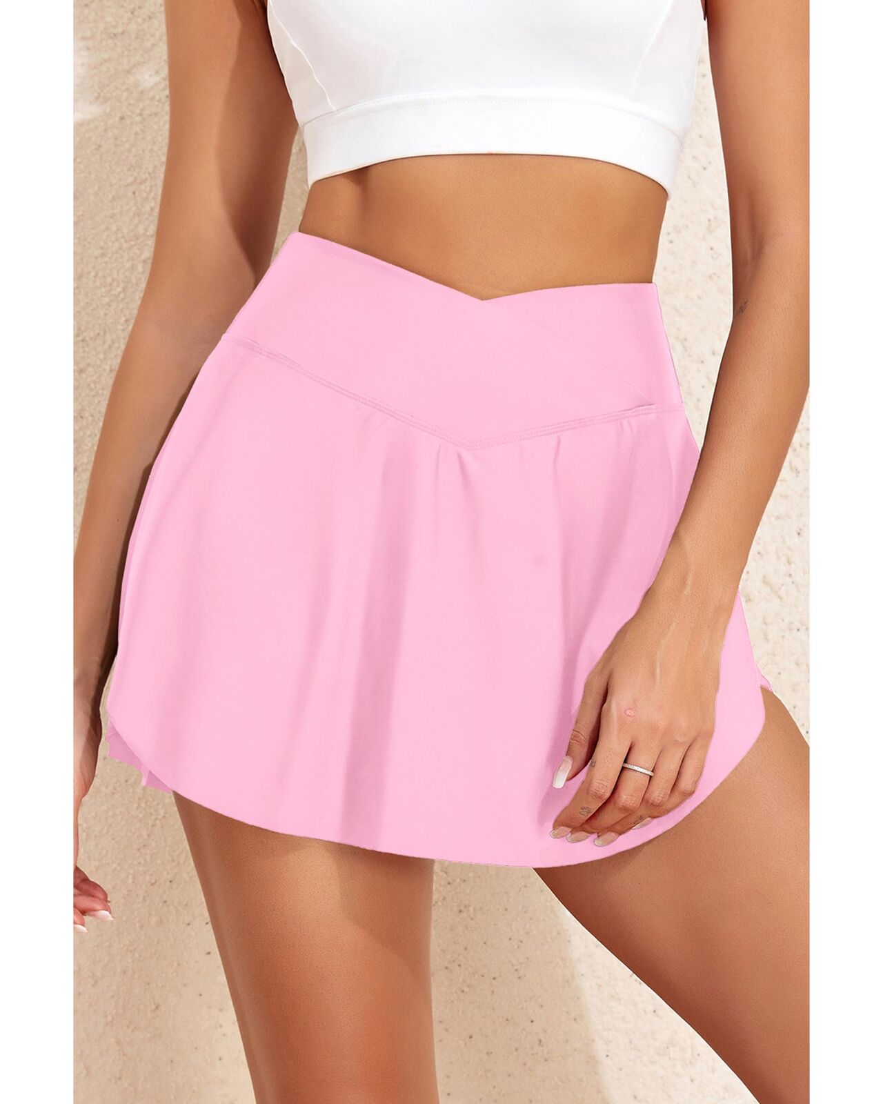 • Solid color swim skort for a sleek and versatile look