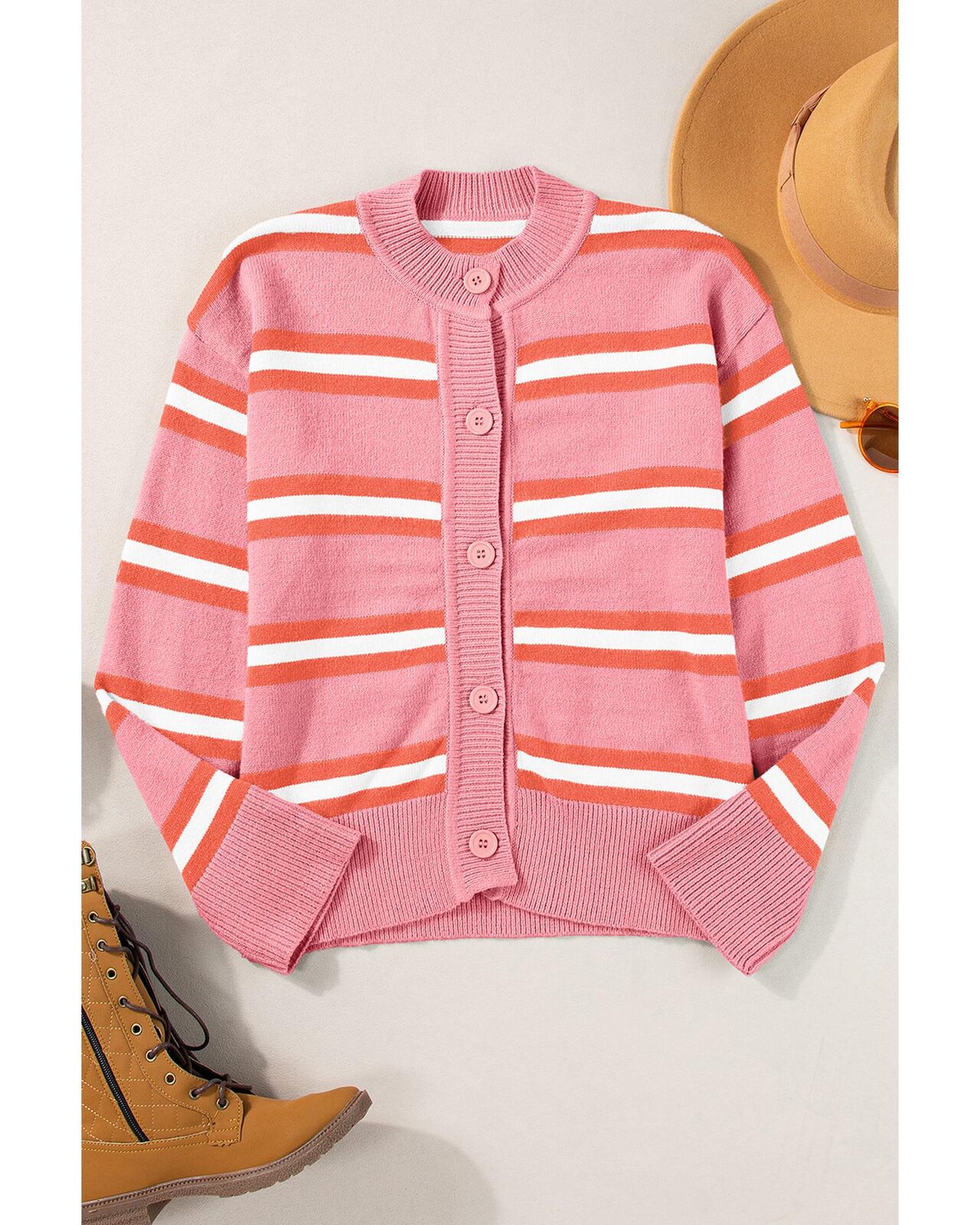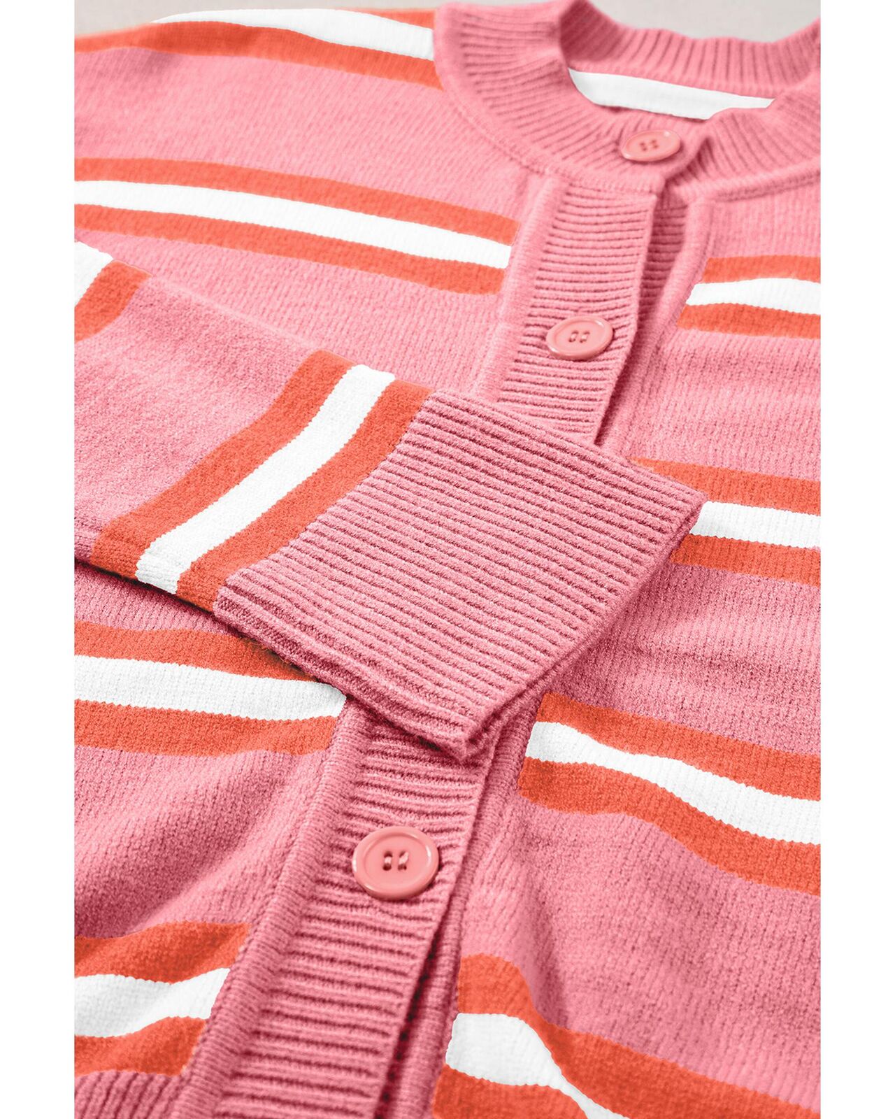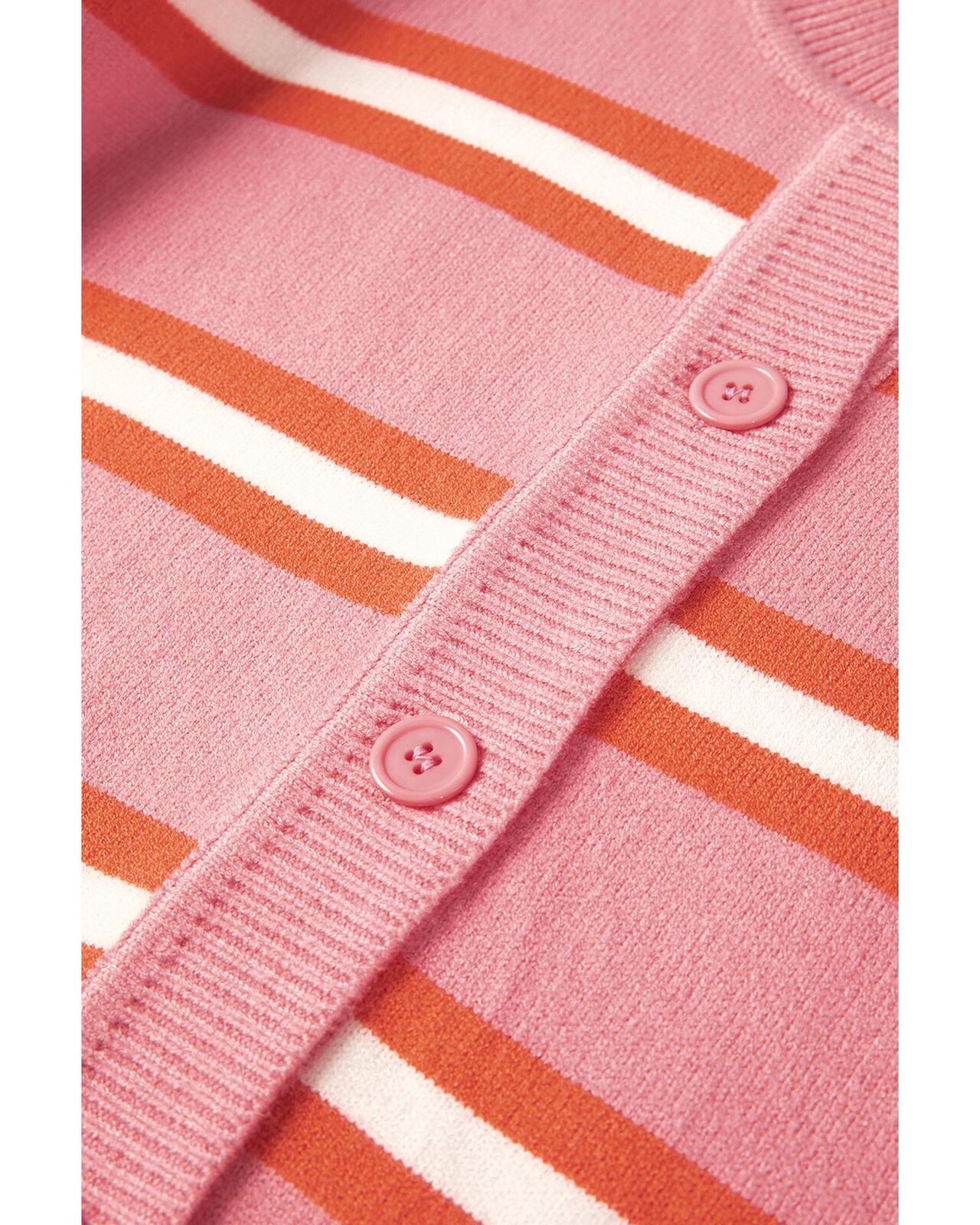 • Pink Stripe Drop Shoulder Buttons Cardigan Sweater