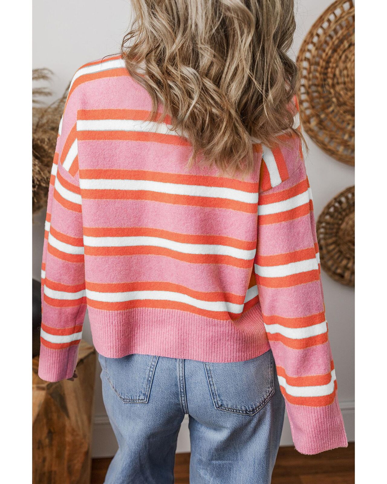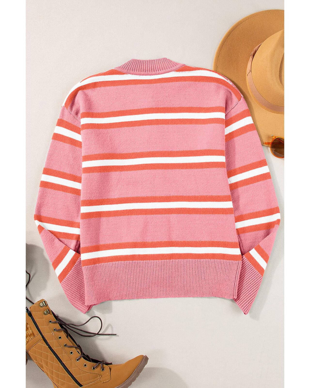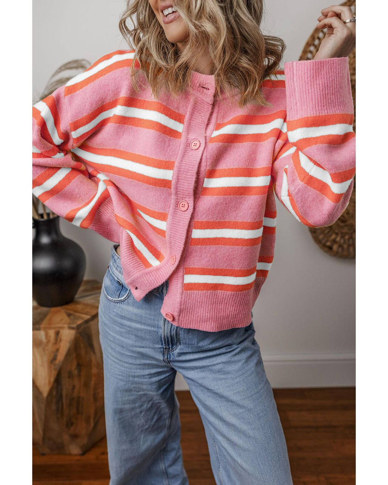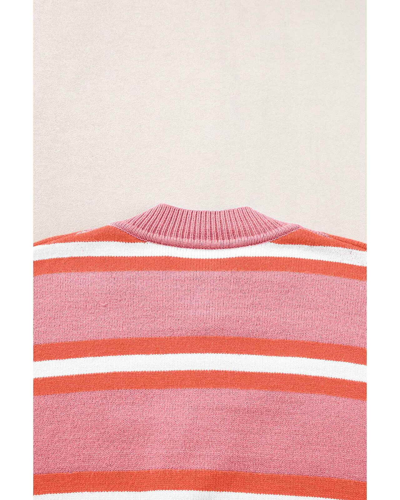 • Pink Stripe Drop Shoulder Buttons Cardigan Sweater