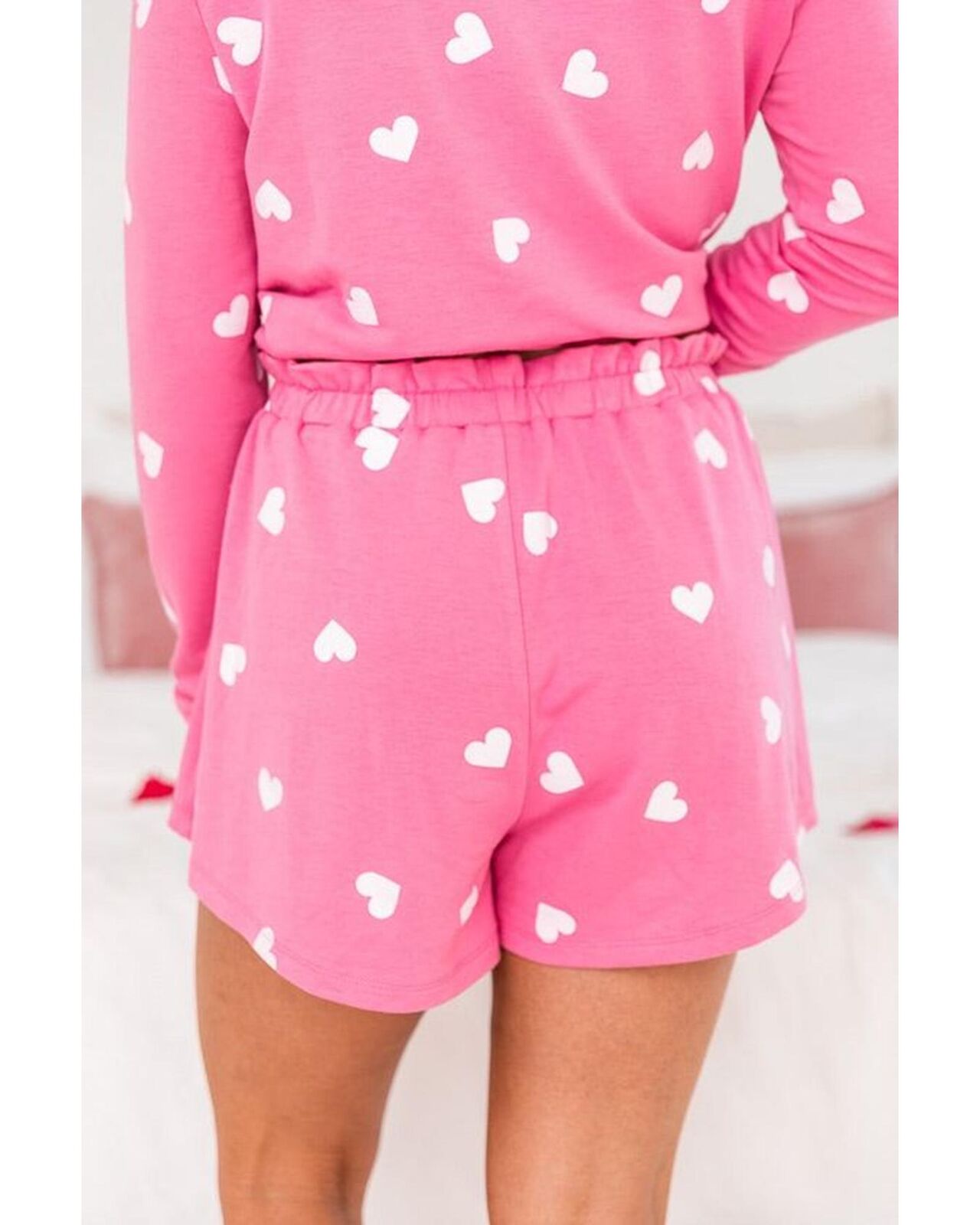 • Pink Valentine Heart Print Long Sleeve Tee and Shorts Lounge Set
