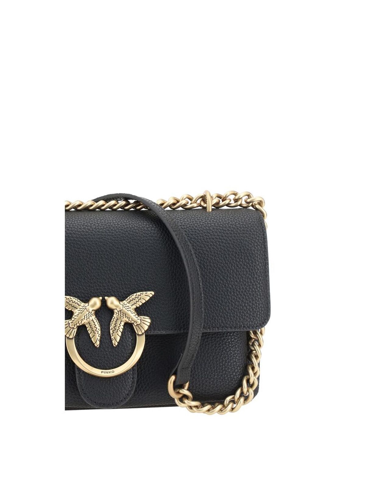• Iconic Love Bird plaque on front closure