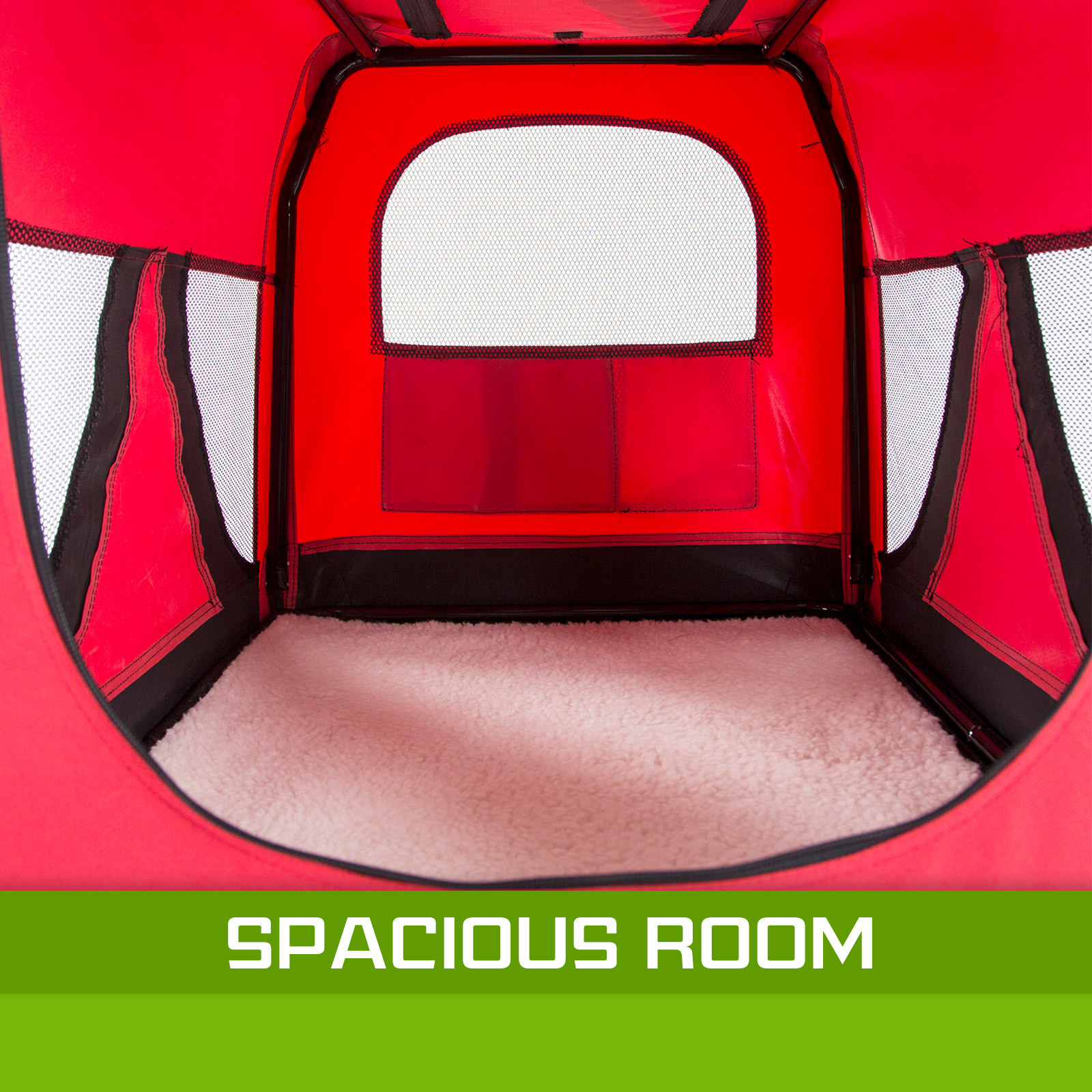 - Mesh windows to improve ventilation and offer comfort for your pet