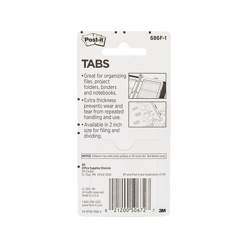 Post-It Tabs Durable 686F-1 Asst 50x38mm Pk24 Bx6