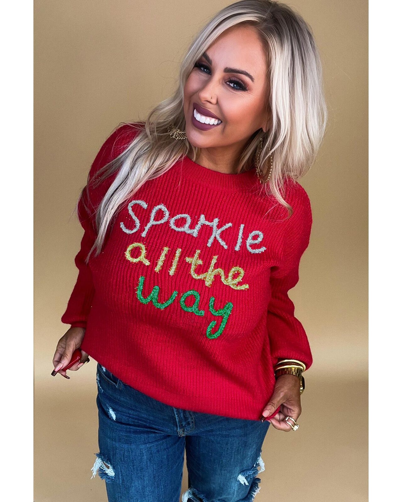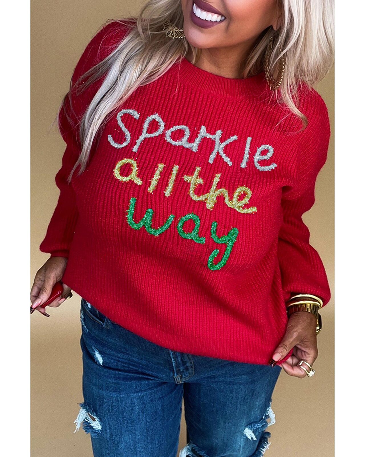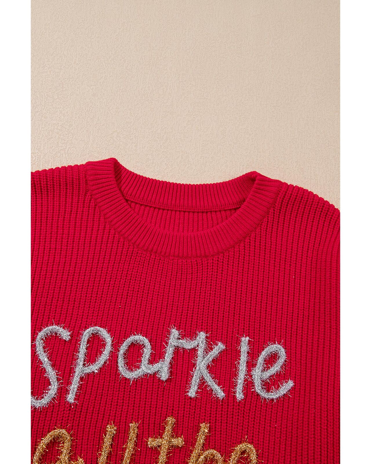 • Racing Red Sparkle All The Way Tinsel Crew Neck Plus Size Sweater
