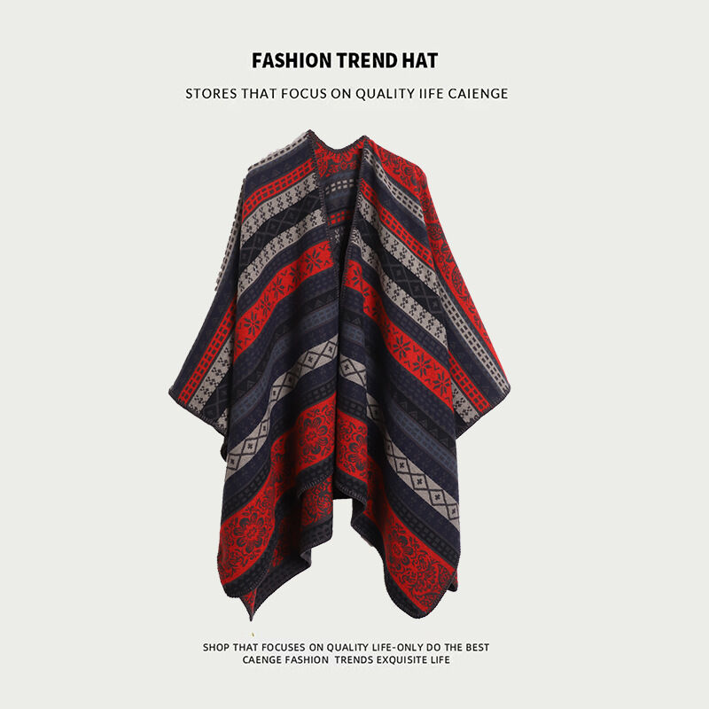 Elevate your style with this Ethnic Boho Shawl for Women. Inspired by traditional designs, this split cape features intricate floral patterns in a stunning color scheme, perfect for fall travel, photo shoots, or keeping warm in air-conditioned rooms. Crafted with care, it offers both functionality and a chic aesthetic for everyday wear or special events.