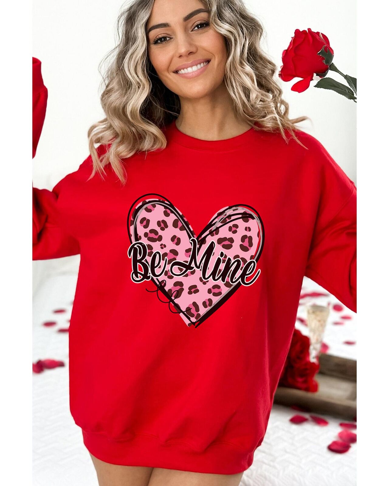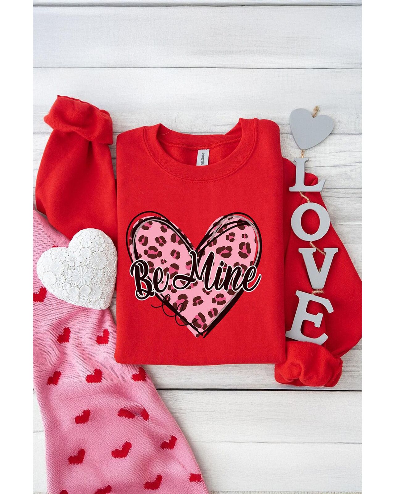 • Red Be Mine Leopard Heart Printed Sweatshirt