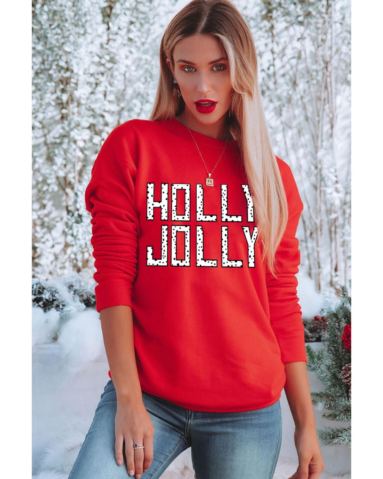• Red HOLLY JOLLY Dotty Letter Graphic Christmas Sweatshirt