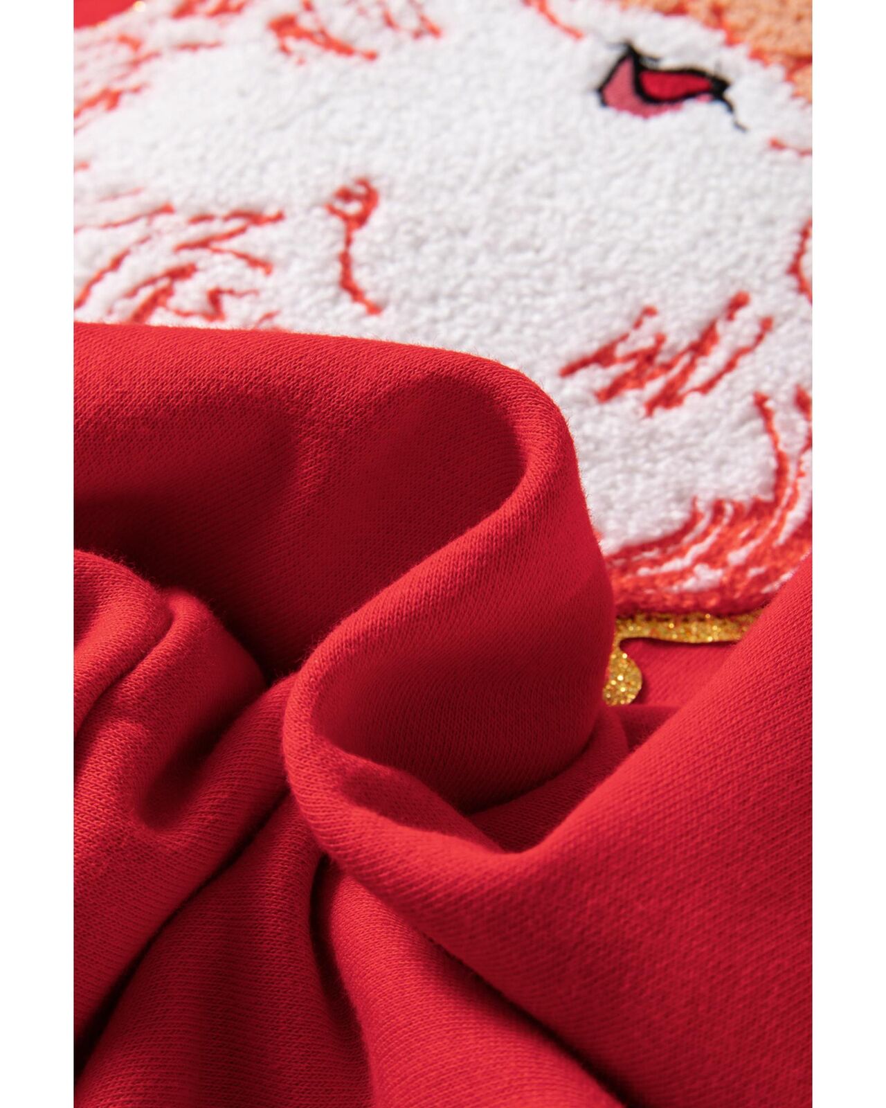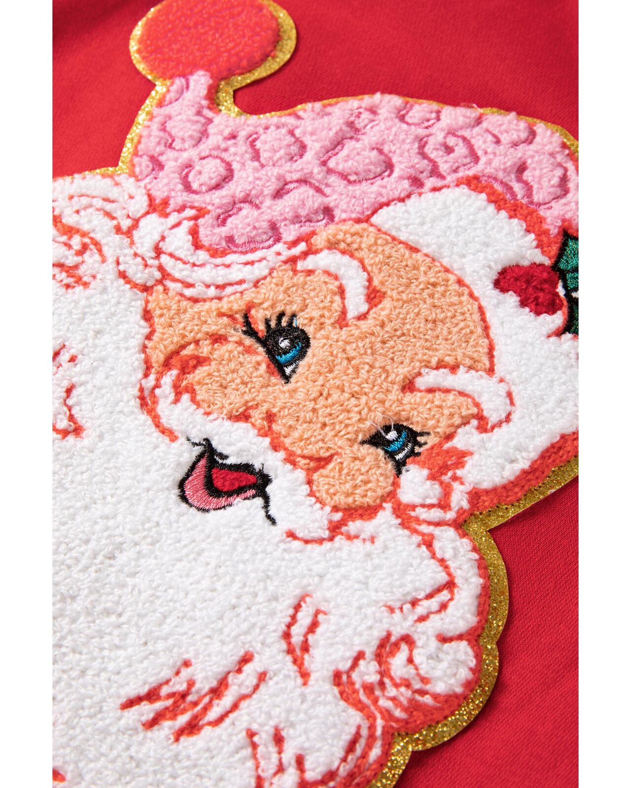 • Red Santa Claus Graphic Crewneck Raglan Sleeve Christmas Sweatshirt