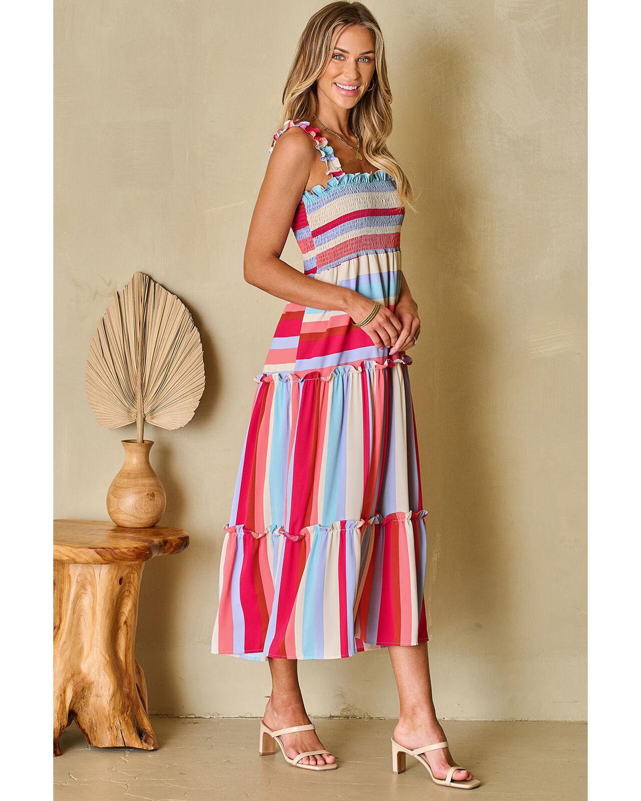 • Smocked bodice and tiered flowy silhouette are loved by modern ladies