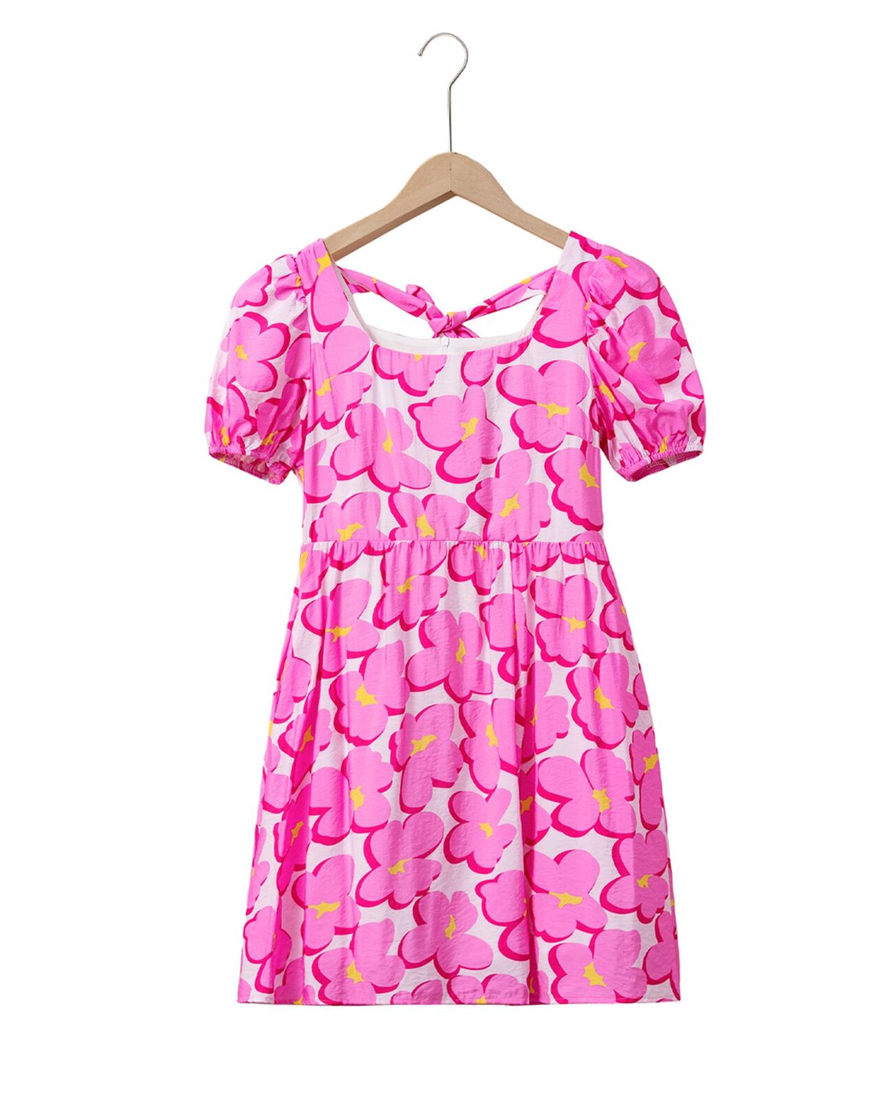 • Rose Floral Print Square Neck Empire Waist Flowy Dress