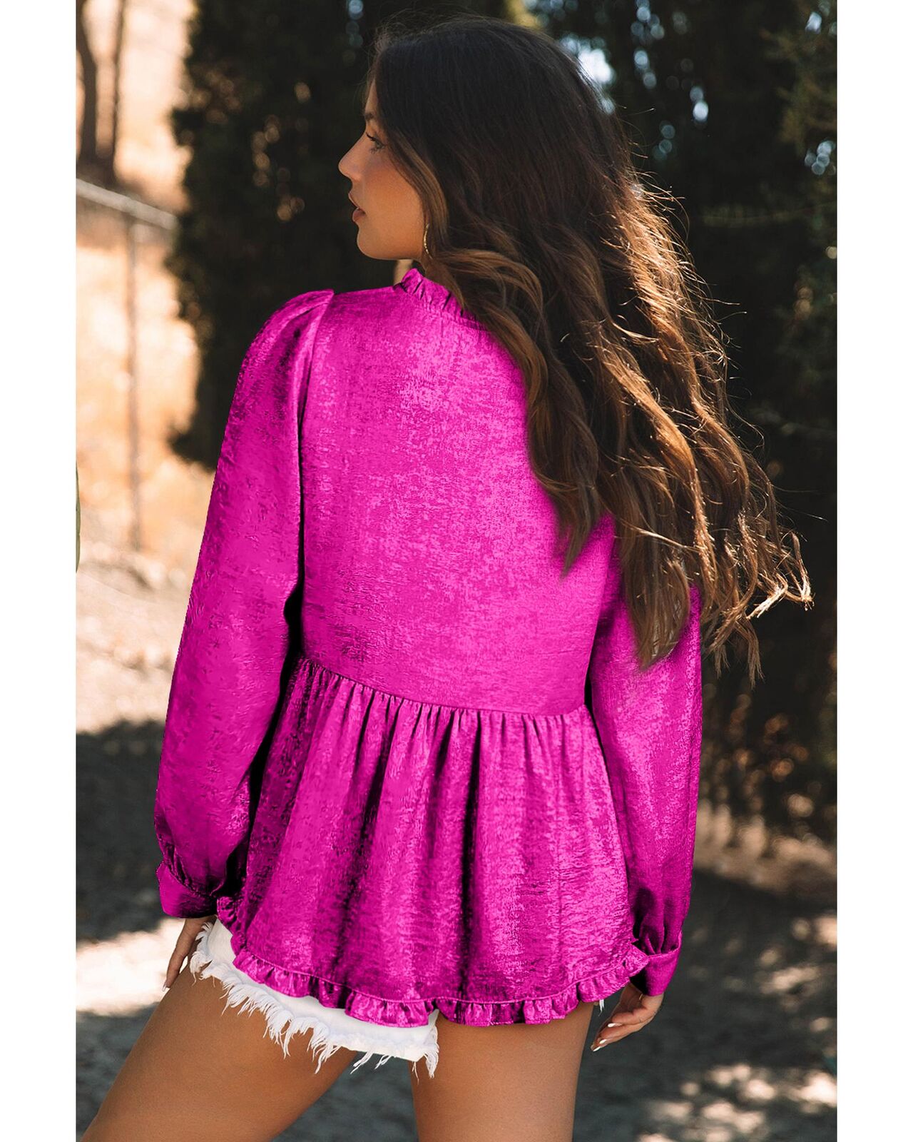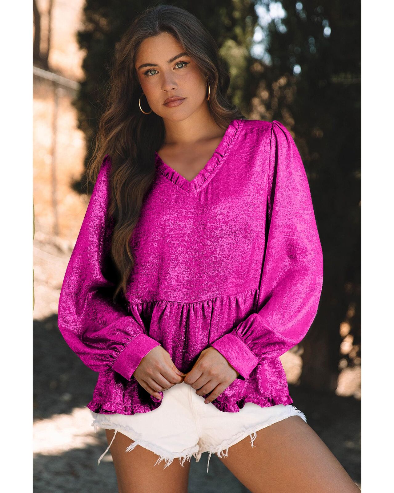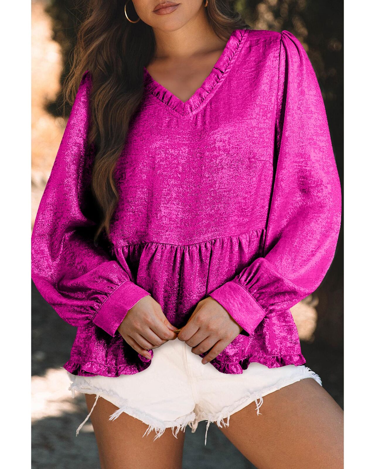 • Elegant frilled V neckline