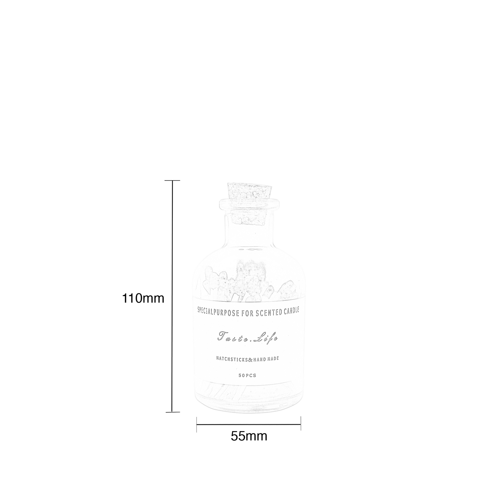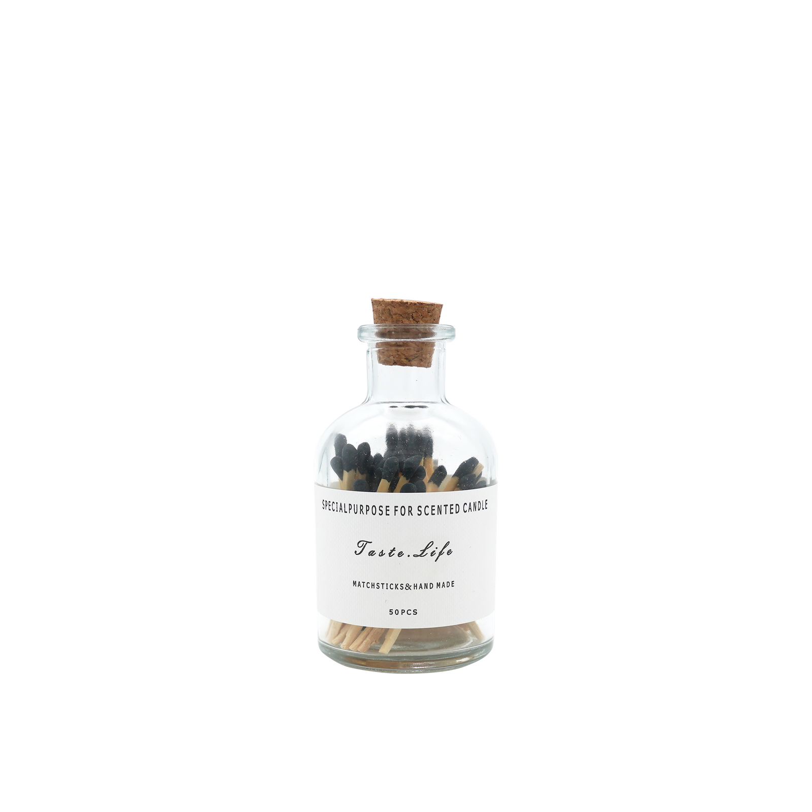 The Little Ruban matches in a chic apothecary bottle are the perfect candle companion.Match bottles are stylishly topped with a cork stopper and the striker is on the side of the jar. Each jar contains 50 matchsticks.