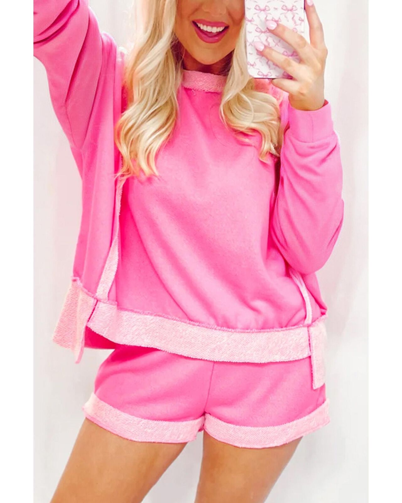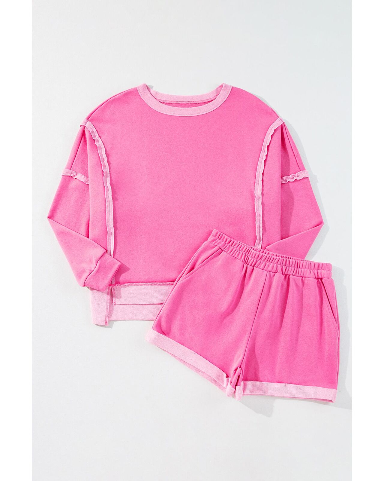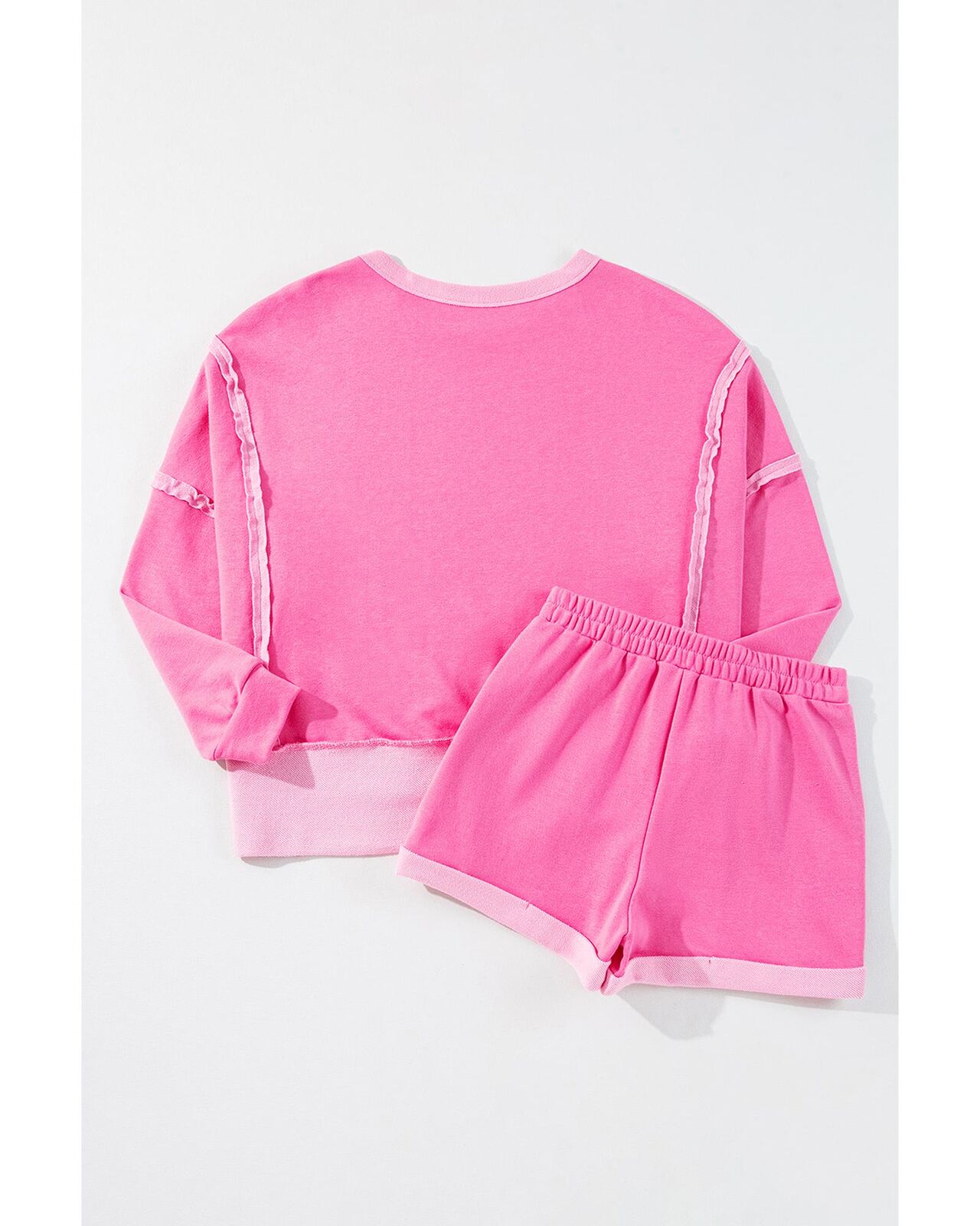 • Sachet Pink High Low Patchwork Long Sleeve Top and Shorts Set