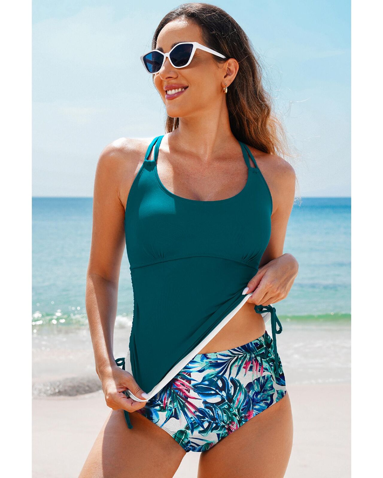 • Color block design for the tankini top