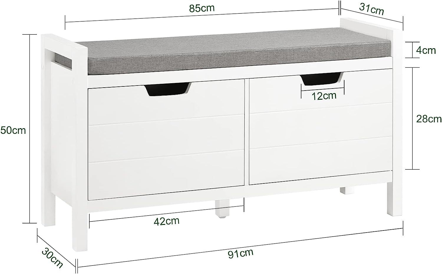 - This robust and reliable storage solution is perfect for any home or office. It features a generous 91cm width, 30cm depth, and 50cm height, and has a weight capacity of 120kg, all while weighing just 15kg.