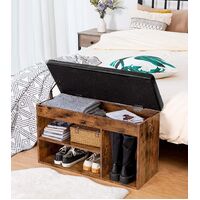 - Comfort and Style Combined: Designed with user comfort in mind, the seat cushion is crafted from soft leather, offering a relaxing spot for putting on or taking off shoes. The sturdy shoe bench supports up to 100 kg, and with its black cushioned seat paired with a rustic brown frame, it brings a touch of style to any room while making a strong visual impact.