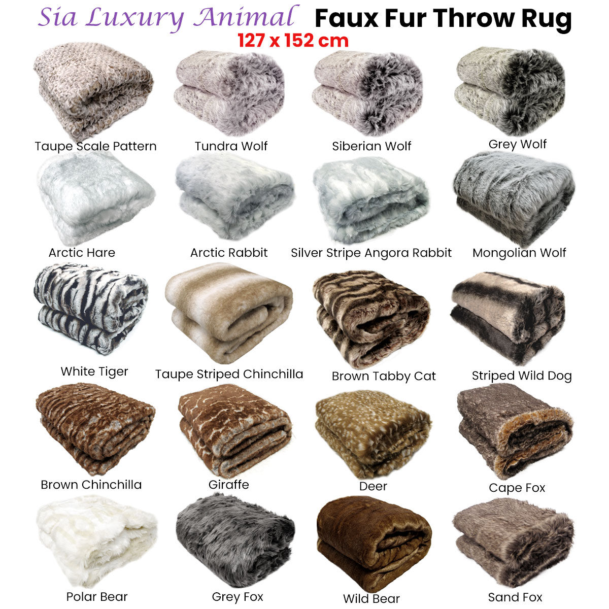 Add sophistication into you bedroom style with this Sia Luxury Range Faux Fur Throw Rug 127 x 152 cm. This throw rug can provide you warmth and comfort on cold winter nights. It features faux fur design in gorgeous colour tones that provides a cosy and comfortable atmosphere. It is made from quality and soft touch Polyester fabric with easy care properties.