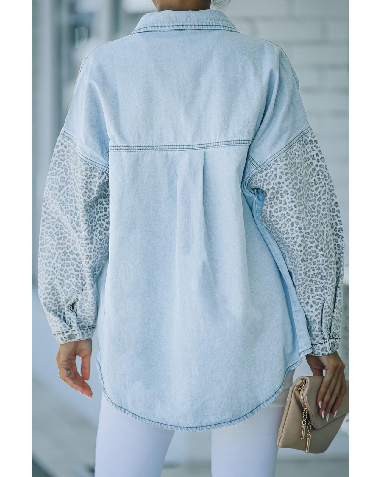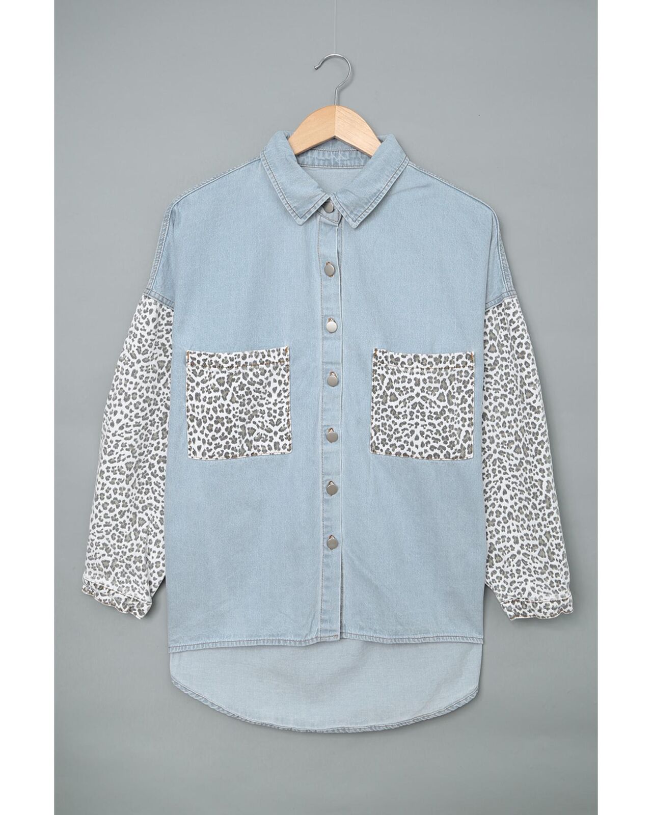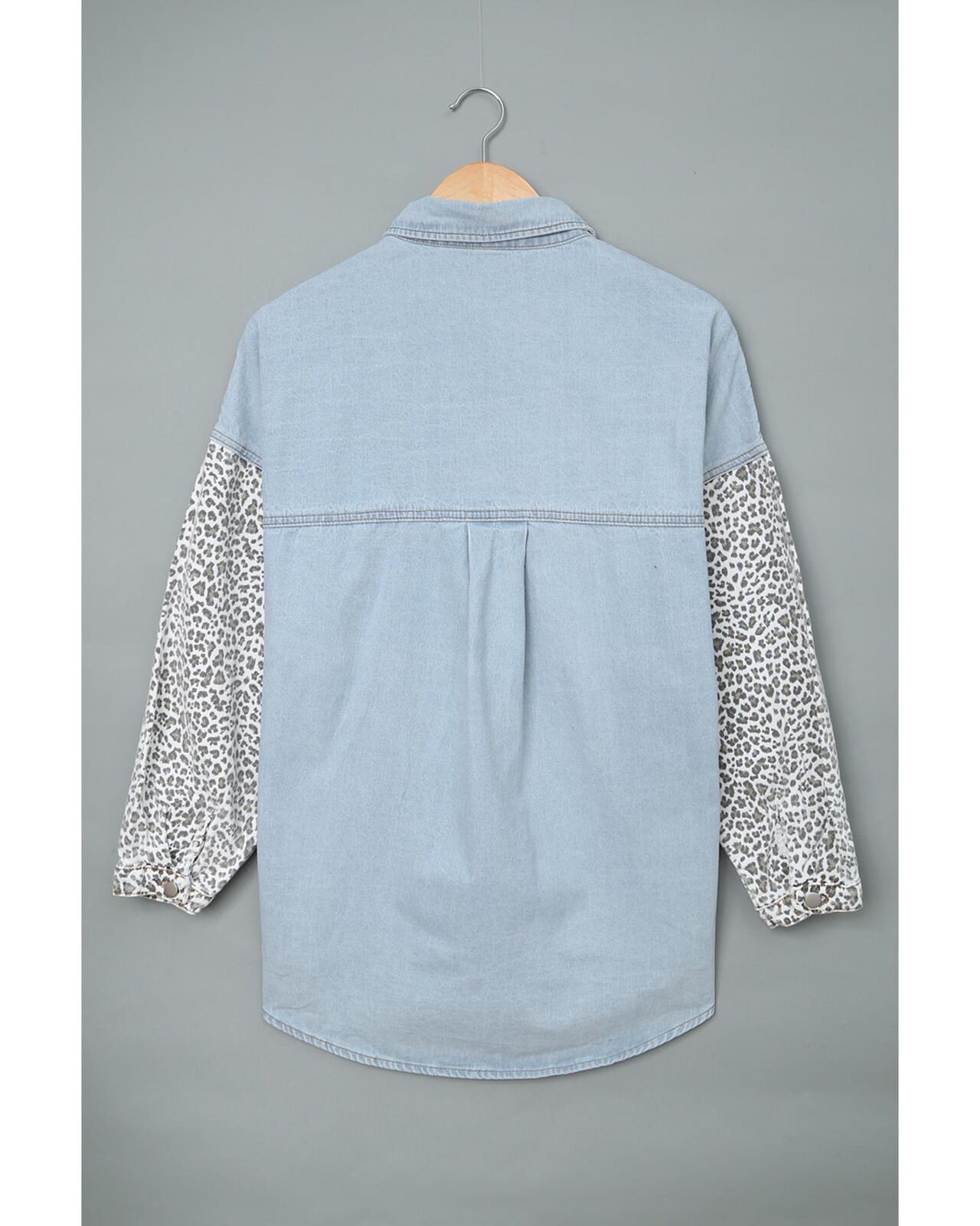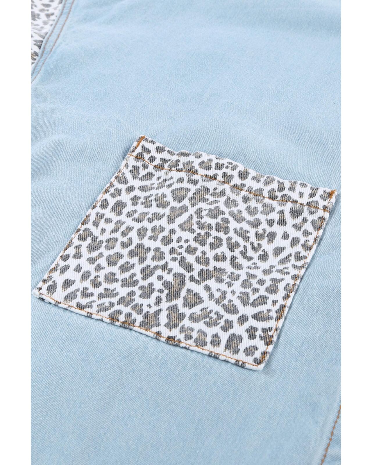 • Stylish Contrast Leopard Denim Jacket