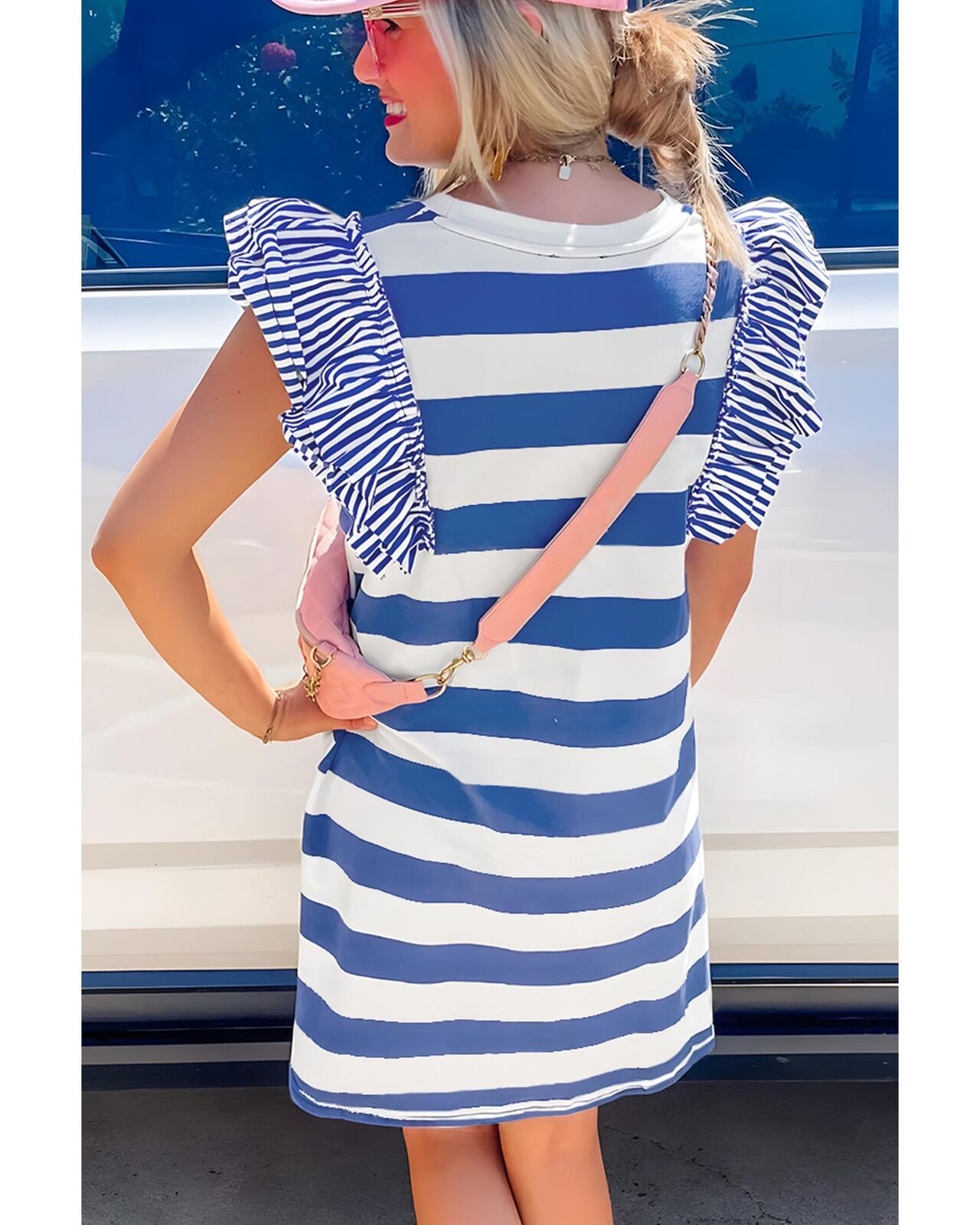 • Sky Blue Stripe Contrast Ruffled Sleeve T