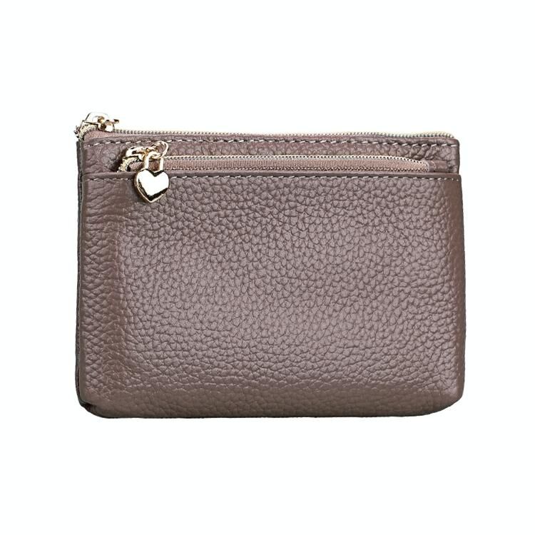 Spacious Litchi Texture Rfid Hand Wallet - Pale Pinkish Grey