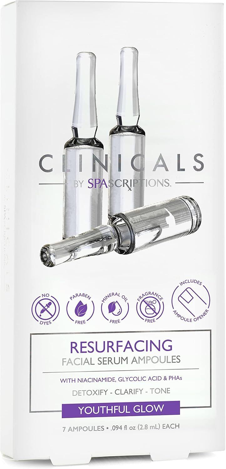 • Clinicals resurfacing serum ampoules contain luxurious ingredients to detoxify, clarify, and tone skin