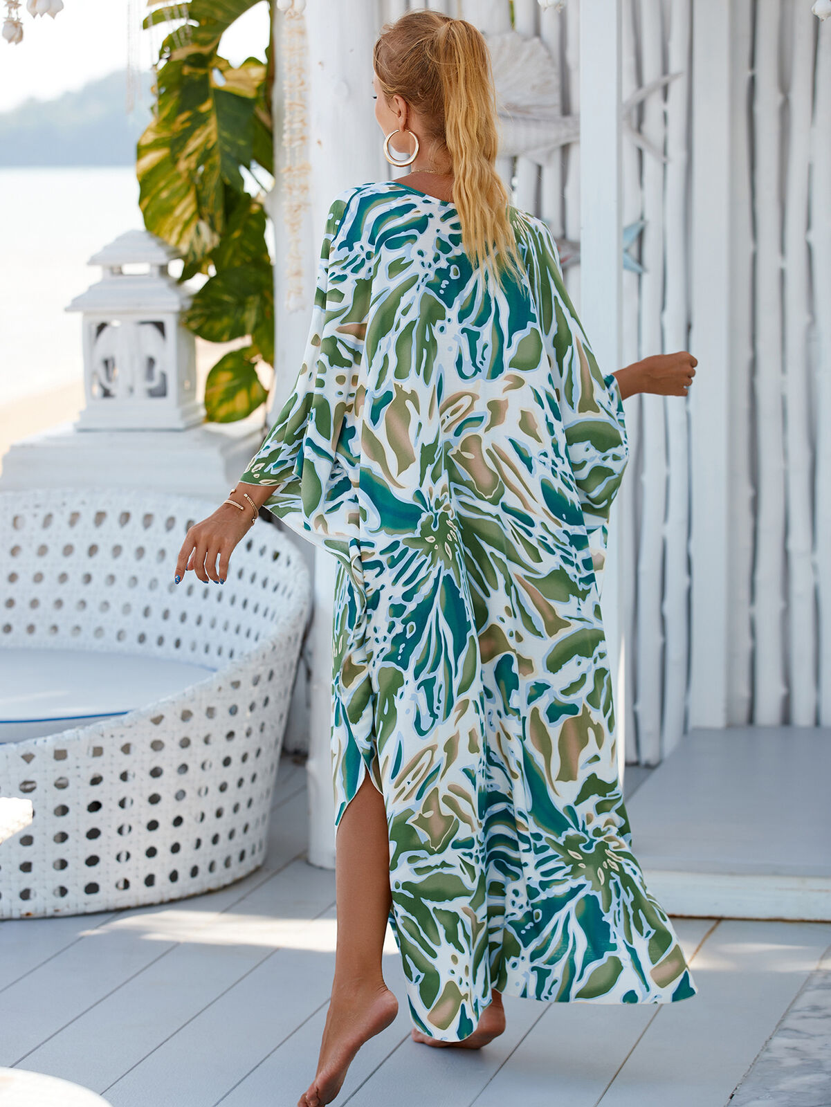 Transform your beach days and poolside moments with our stunning dress. This lightweight and flowy cover-up is perfect for adding a touch of bohemian chic to your swimwear. Whether you're lounging by the sea or enjoying a resort getaway, this Kaftan will keep you comfortable and stylish.