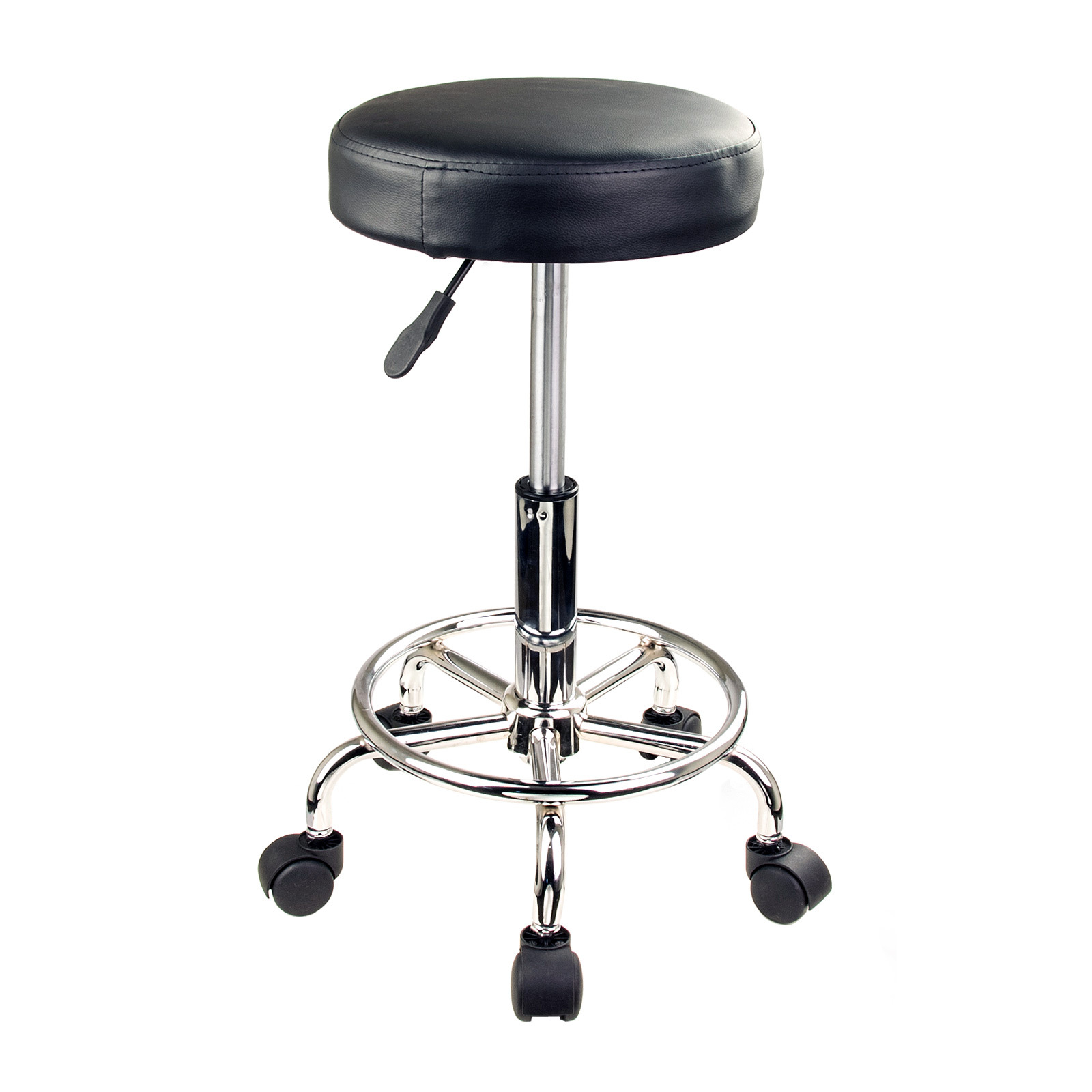 This 360 degree swivel Black Premium PU Leather Hydraulic Rolling Stool is perfect for your home, massage practice, hair salon and many more applications!