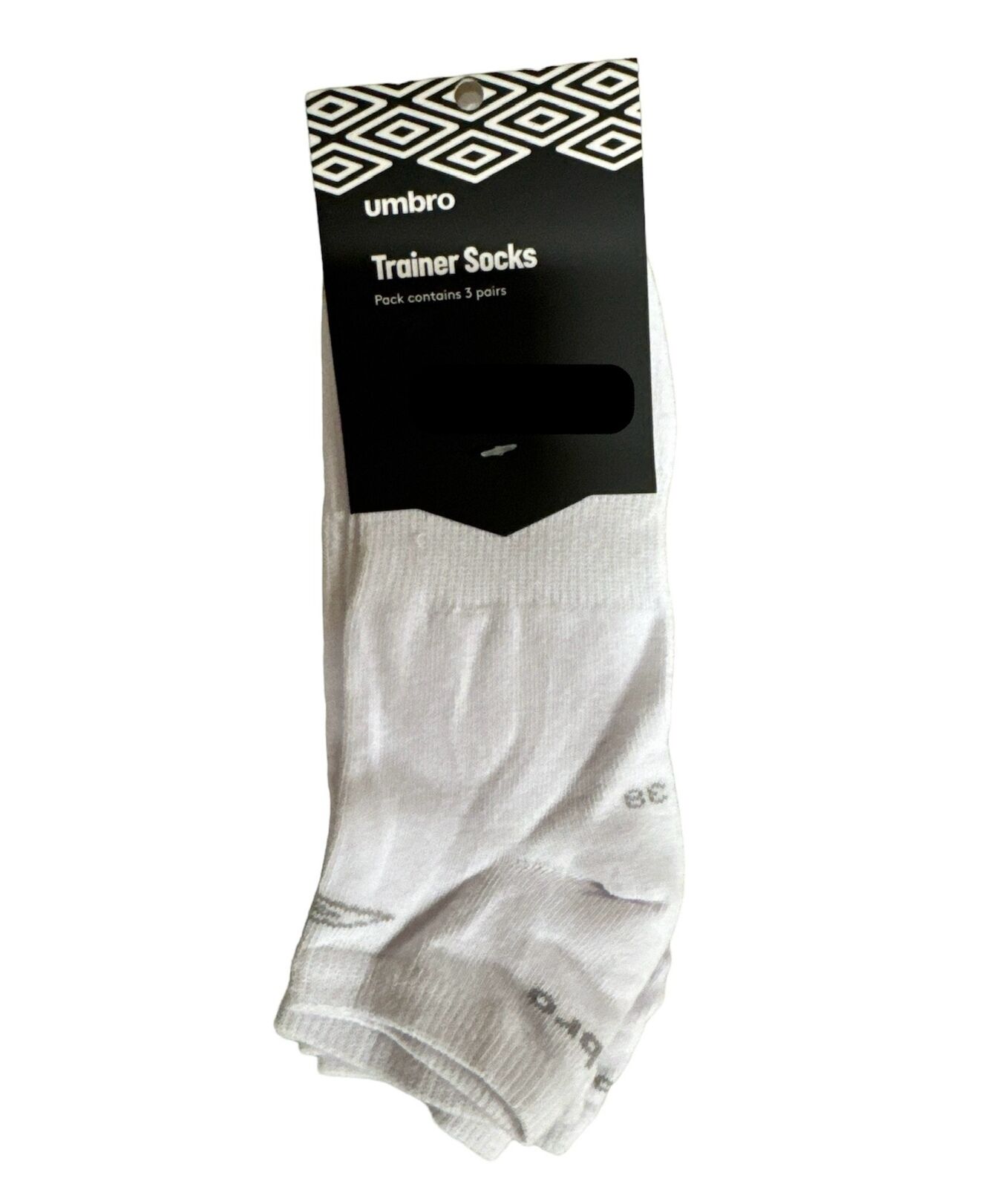 Umbro Mens Trainer Ankle Socks - White - 1 Pack of 3 Pairs - EU 35-38