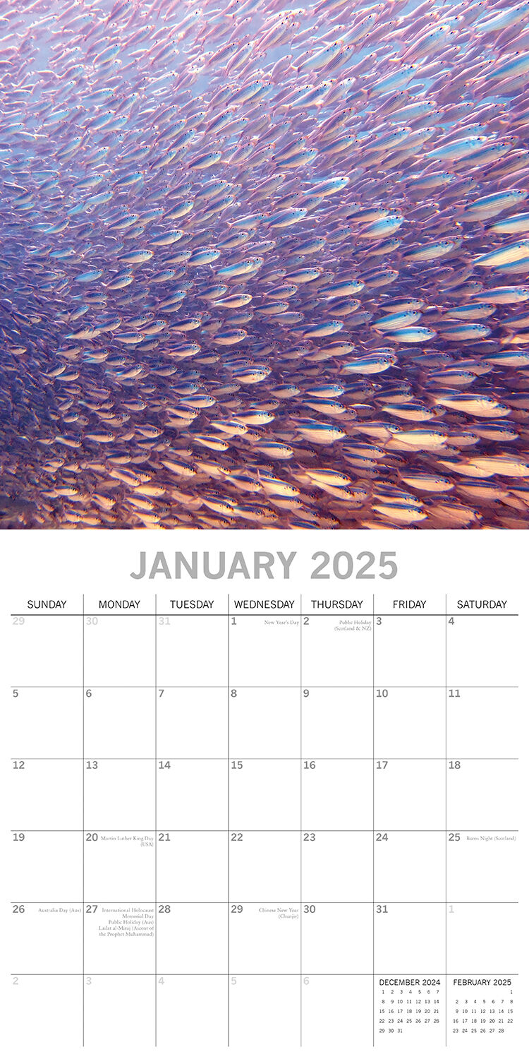 This beautifully designed, brand-new calendar is both 100% plastic-free and fully recyclable. It comes shrink-wrapped in its original packaging and features: