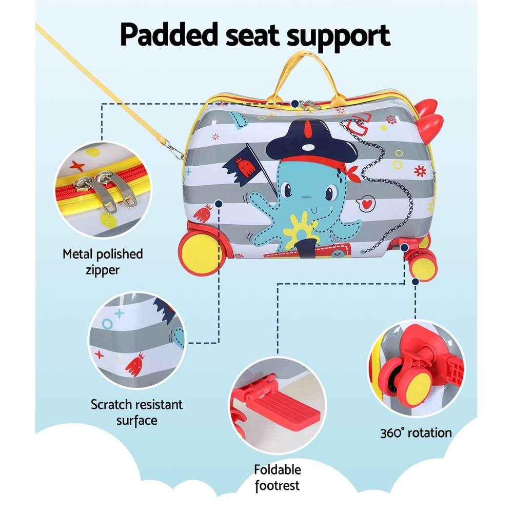Wanderlite 17" Kids Ride On Luggage Children Suitcase Trolley Travel Octopus