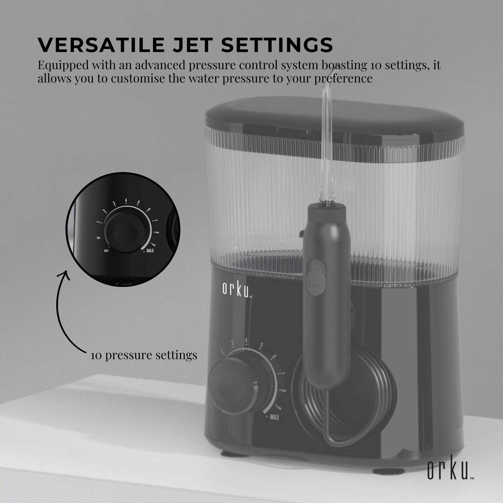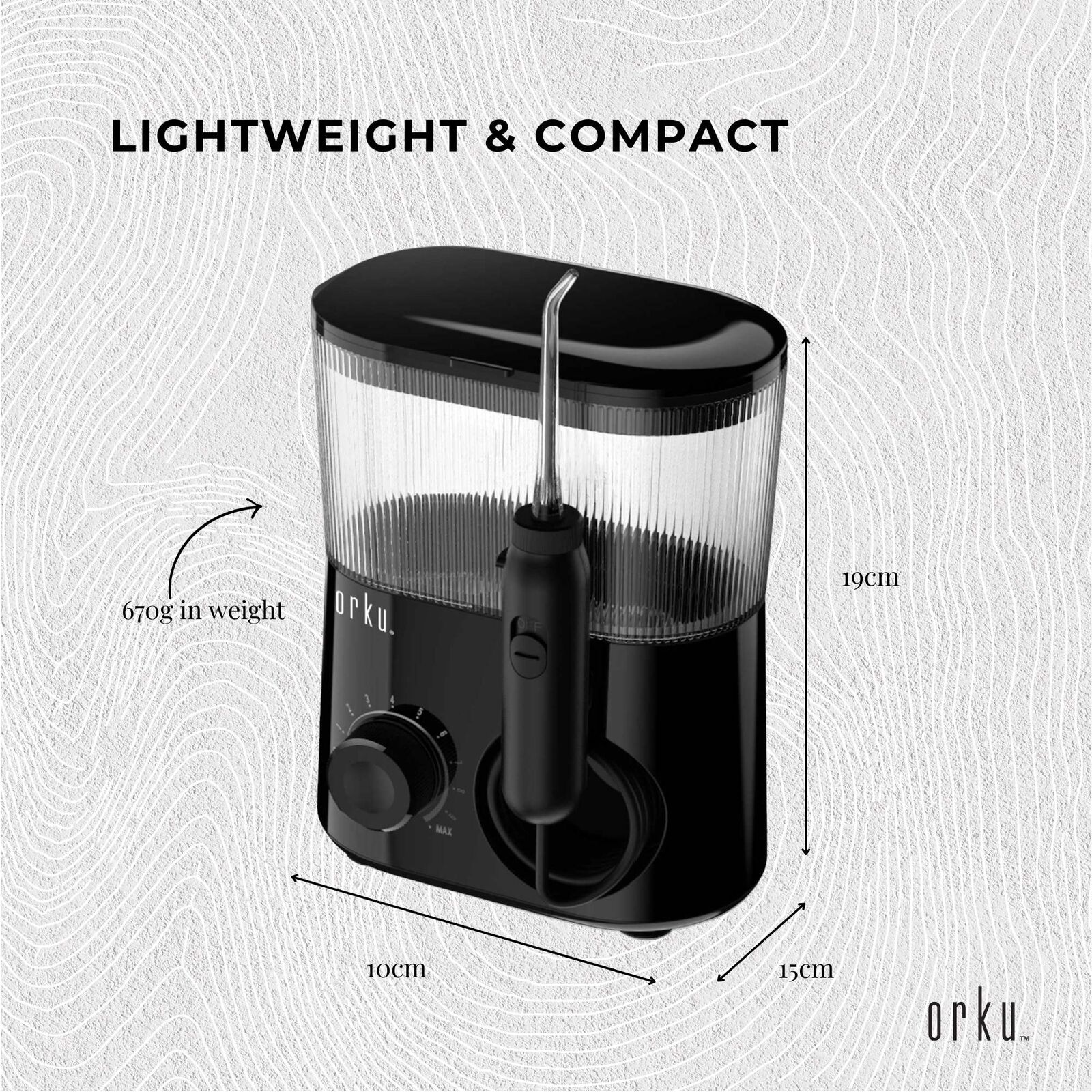 Discover the ultimate in dental cleaning technology with the Orku Oral Irrigator Water Jet Flosser Teeth Cleaner, presented in a sleek design. This advanced oral hygiene tool is engineered to provide a thorough clean for those hard-to-reach areas, ensuring your teeth and gums stay refreshed and clean.